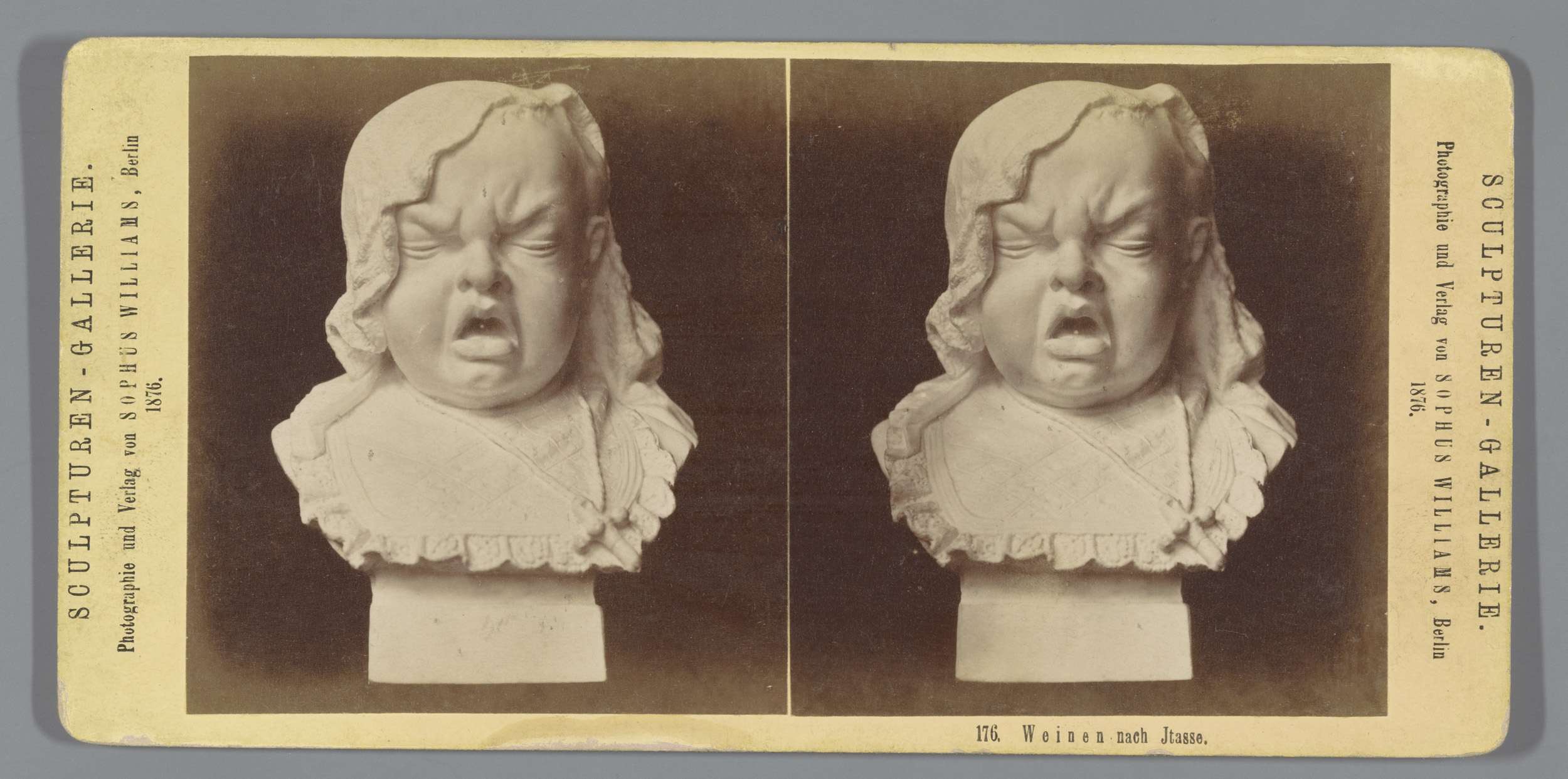 Sculptuur van een huilend kindergezicht naar Jtasse