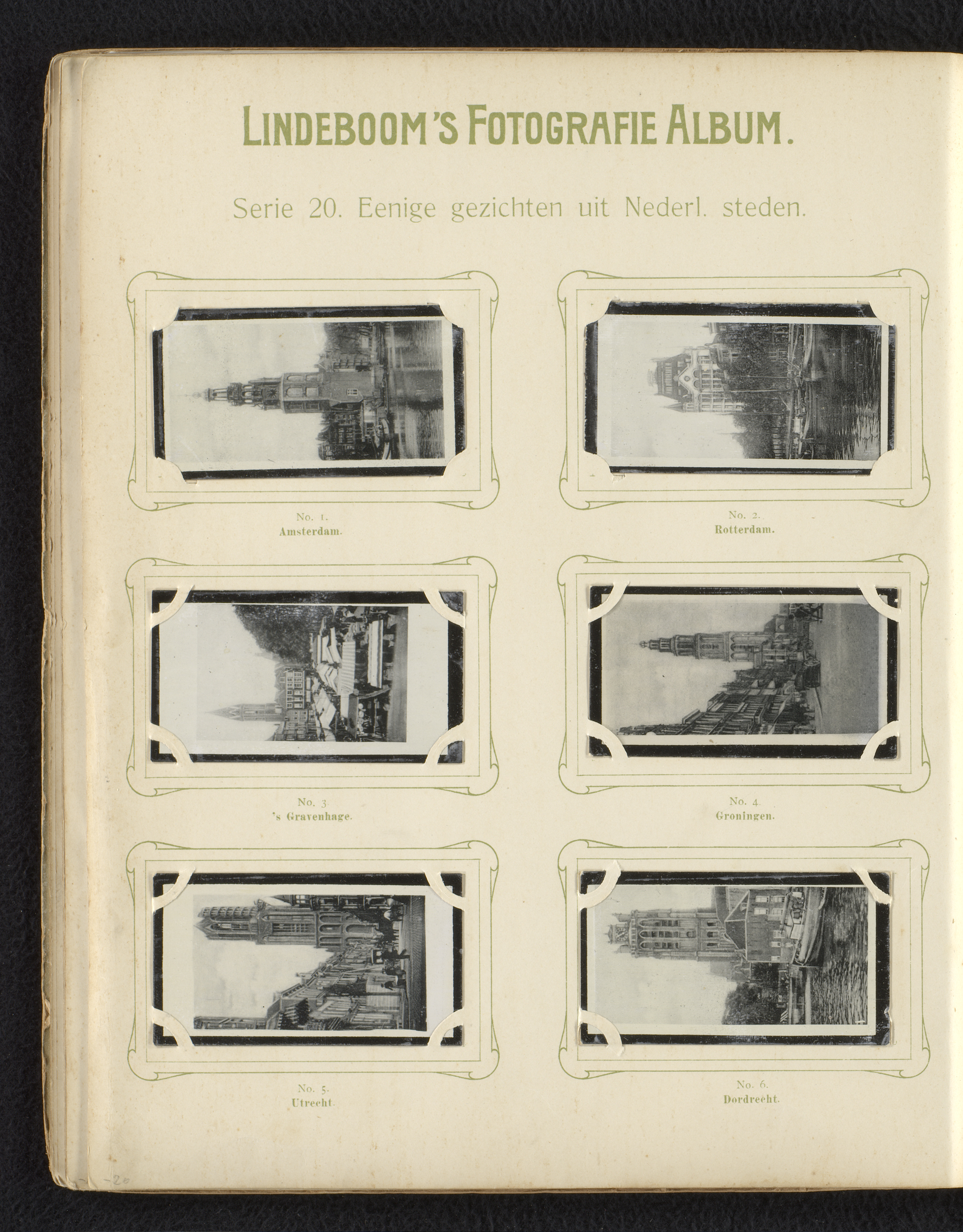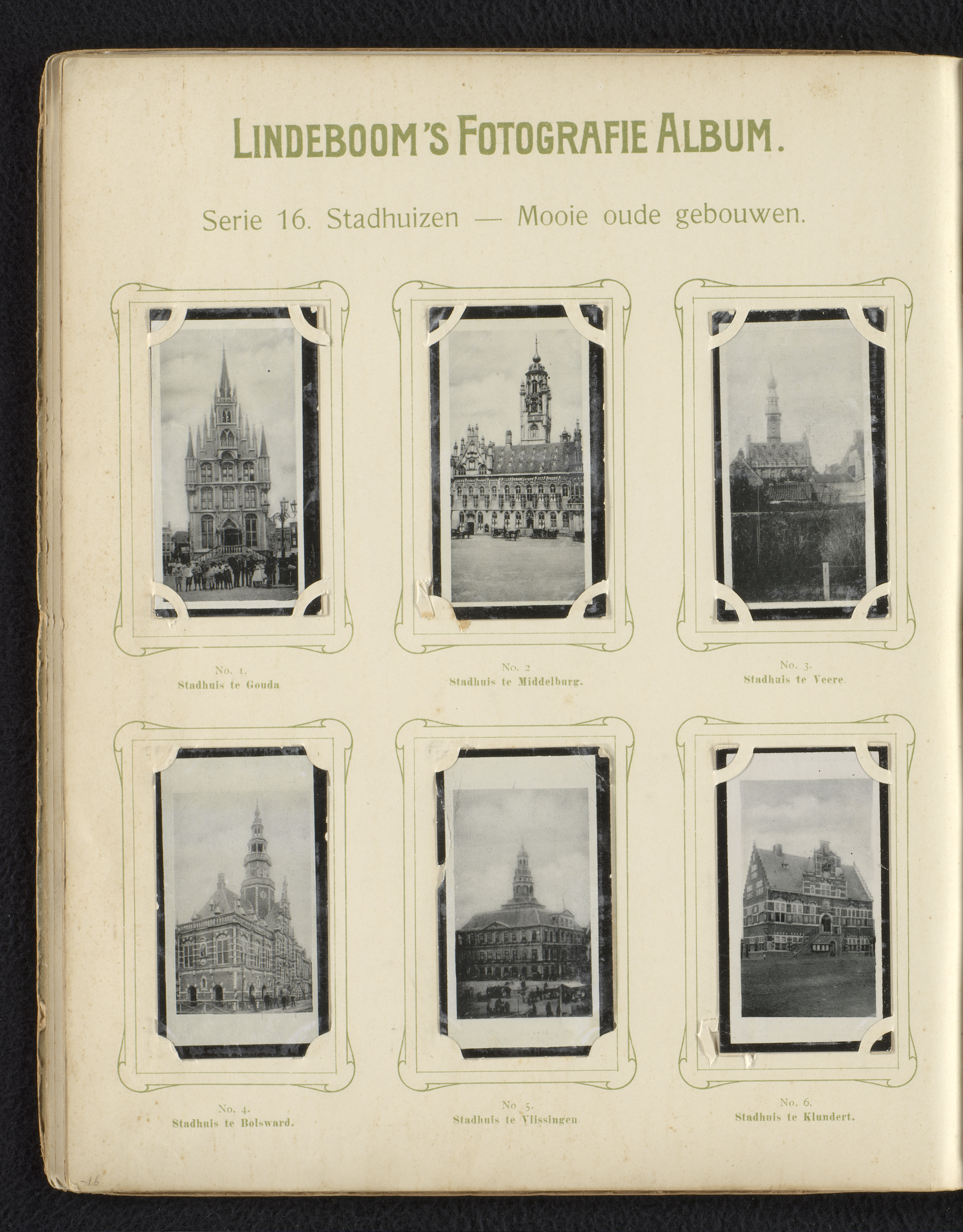 Zes reproducties van gefotografeerde stadsgezichten ...
