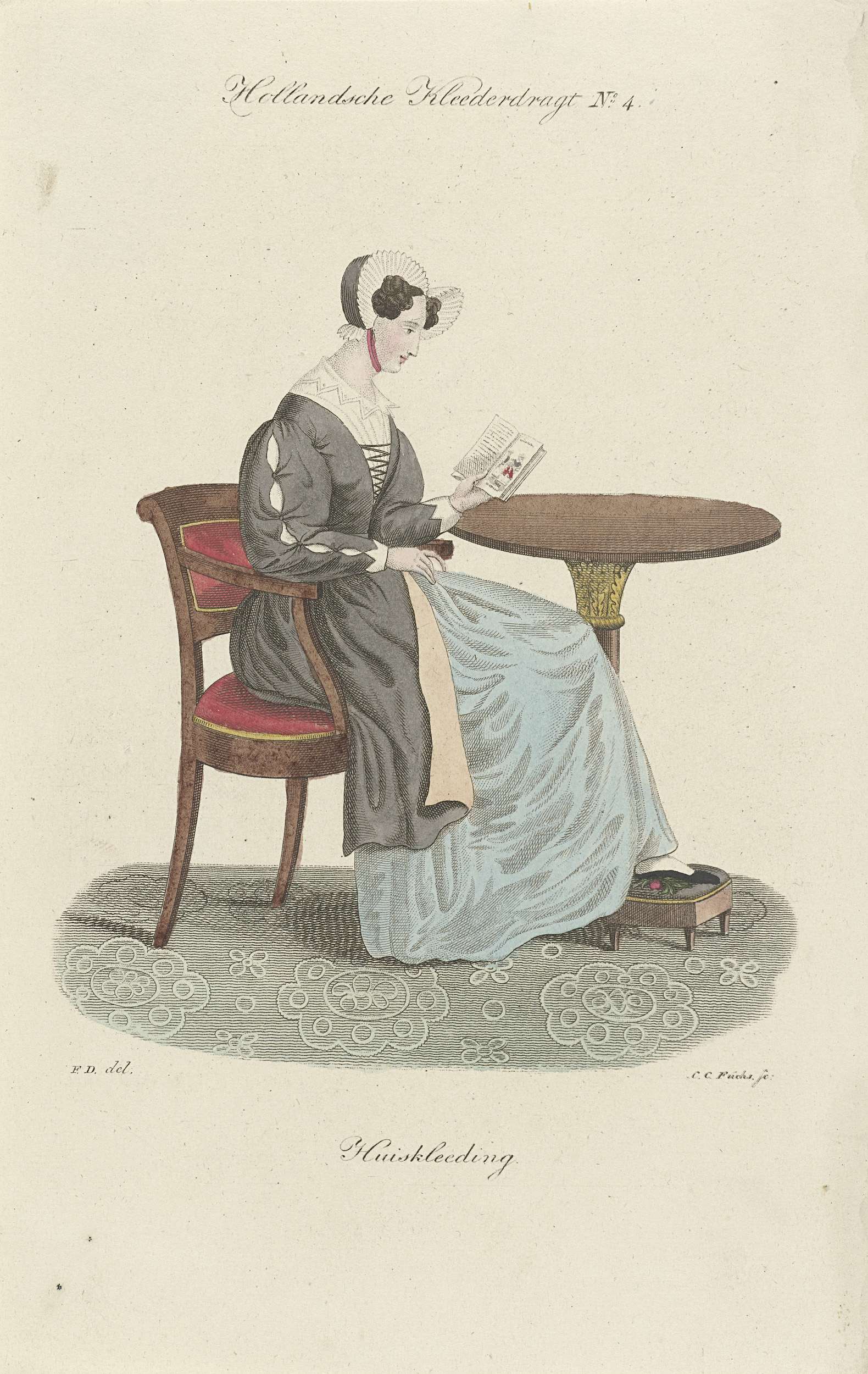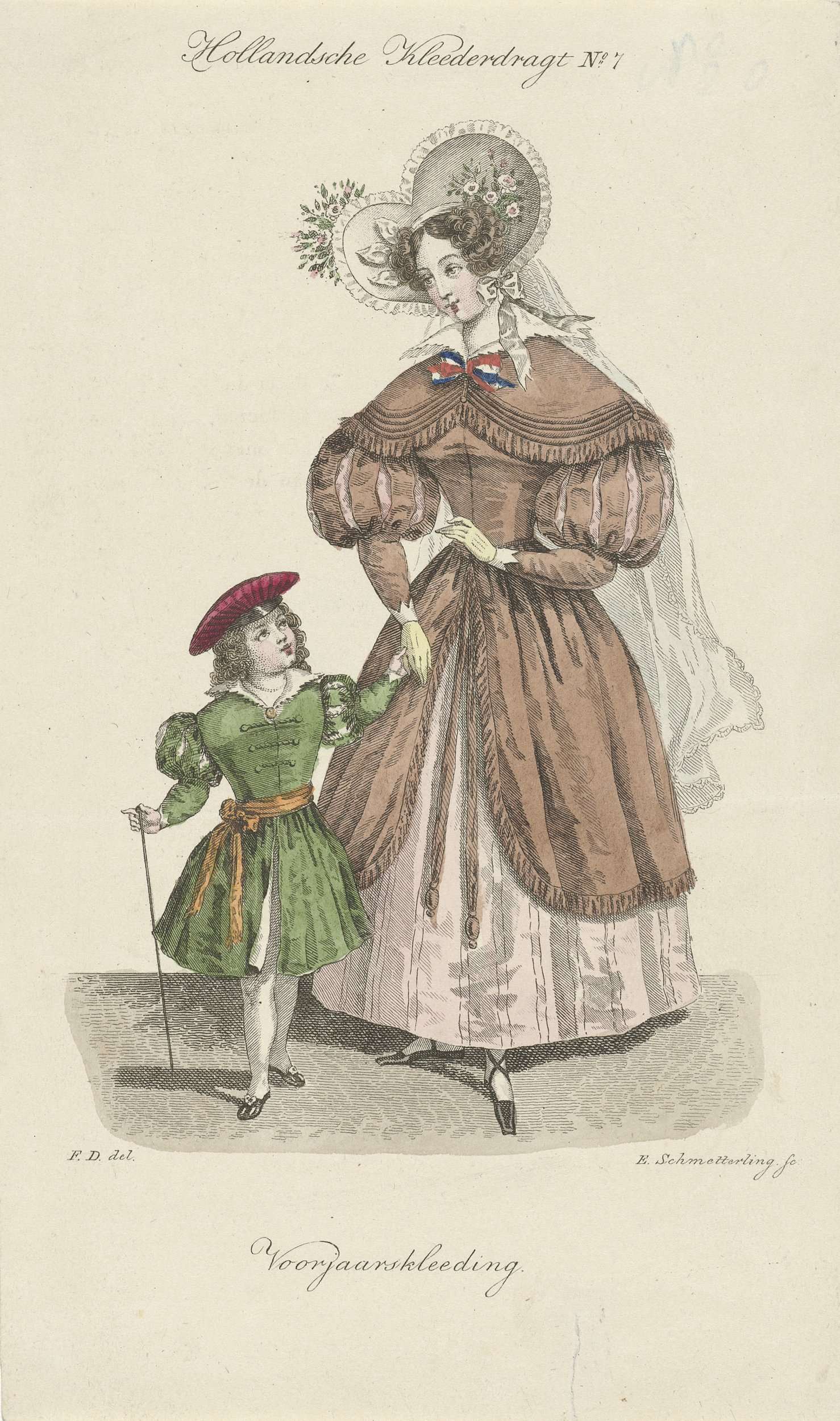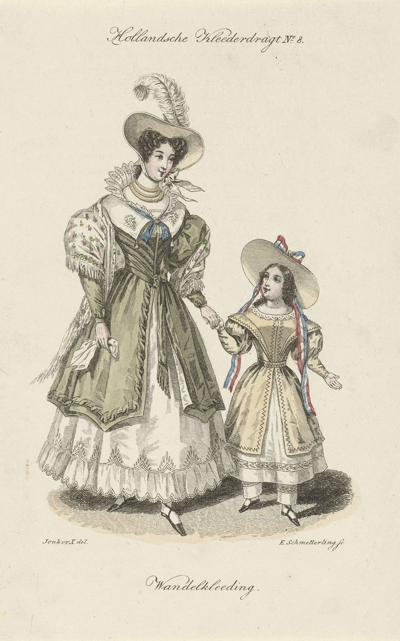 Hollandsche Kleederdragt no. 4: Vrouw en kind in wan...