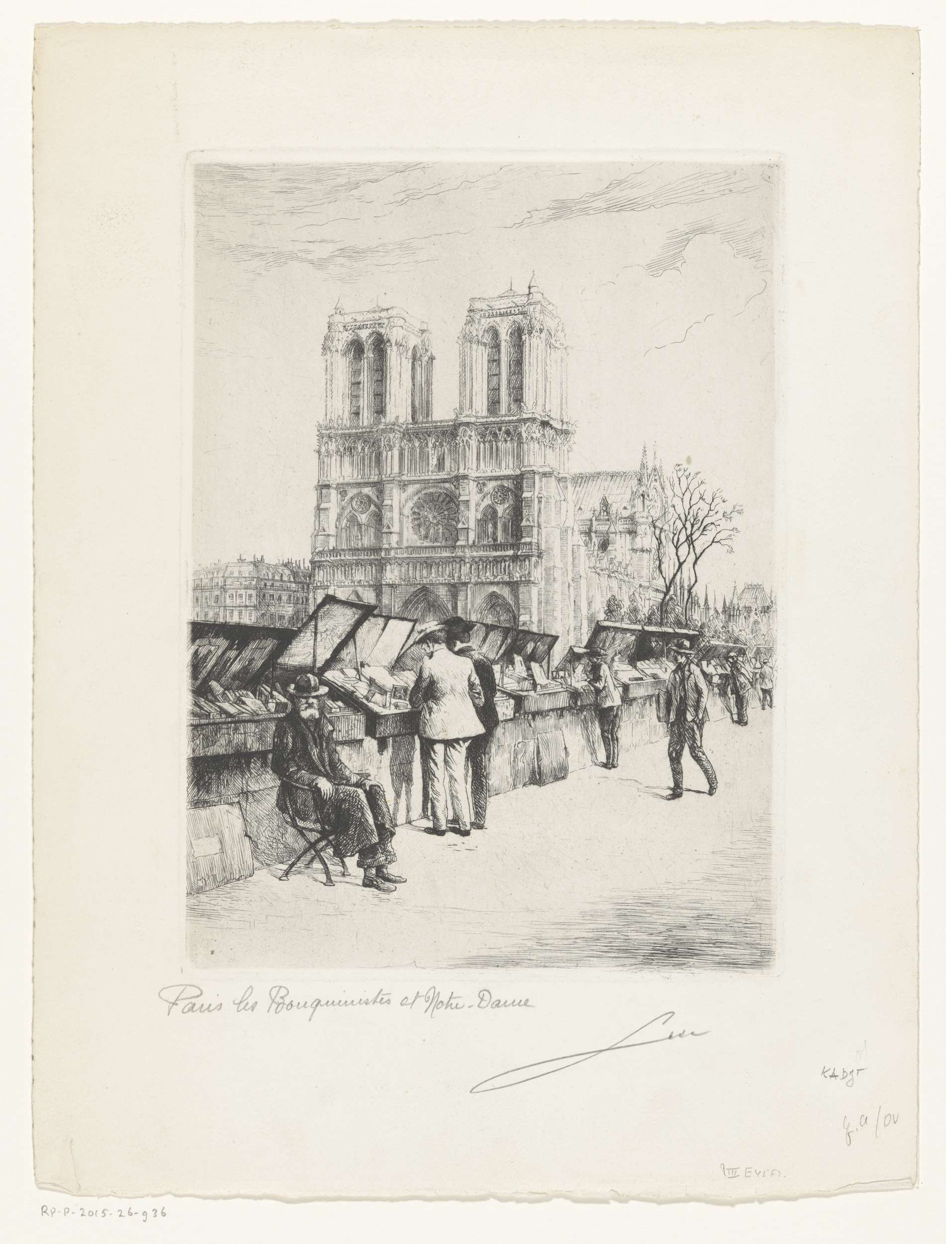 Boekhandelaren op een kade, de Notre-Dame in de acht...