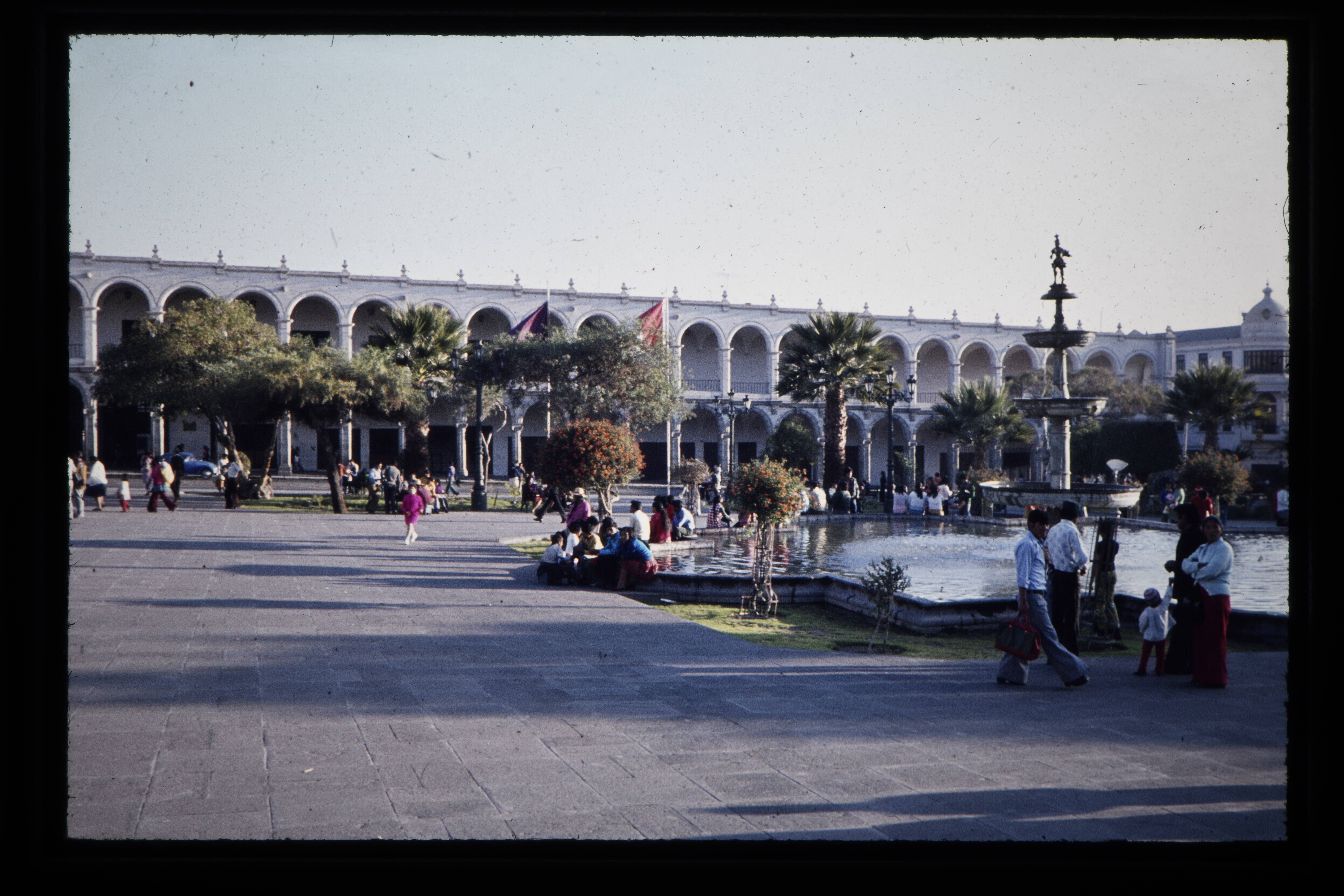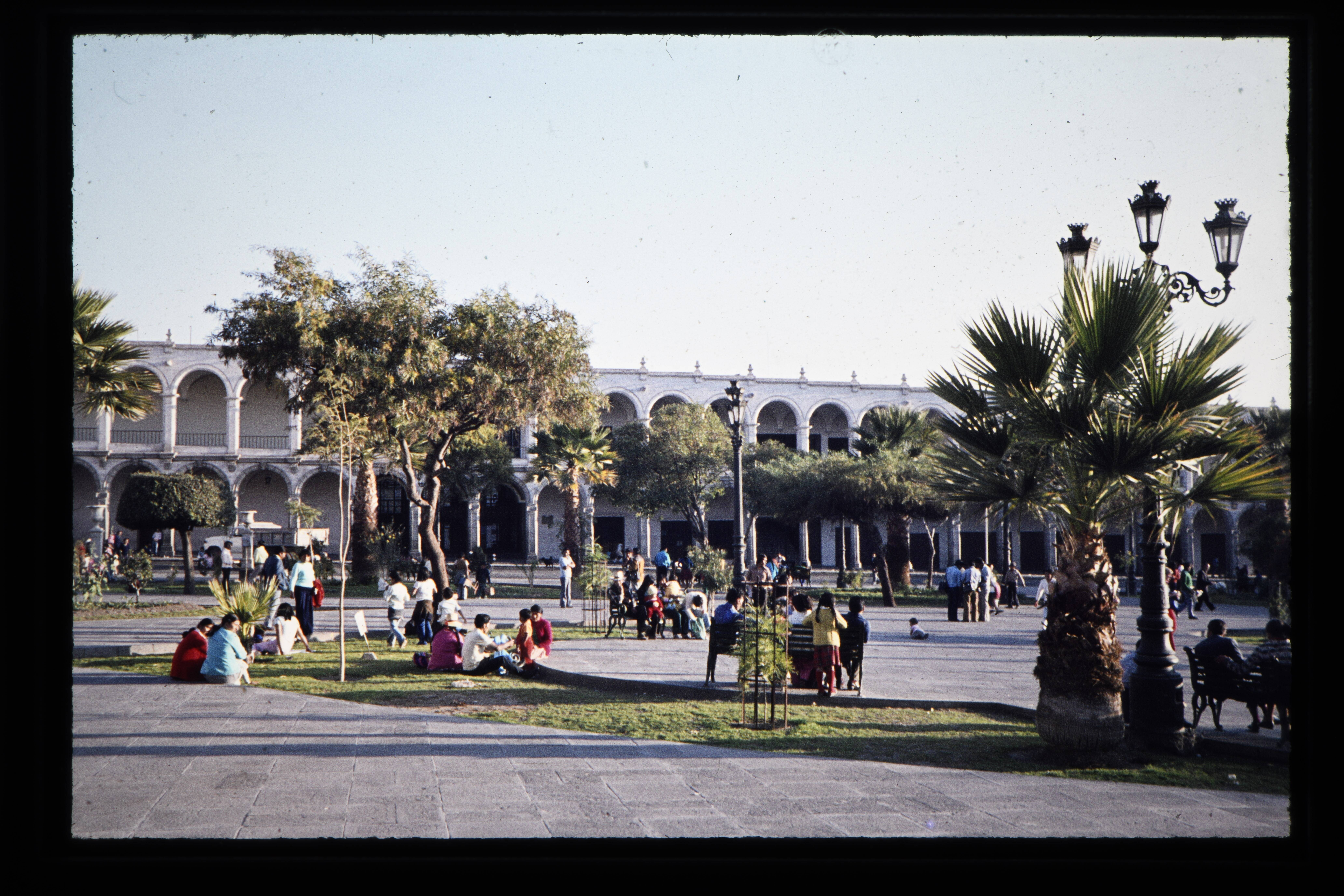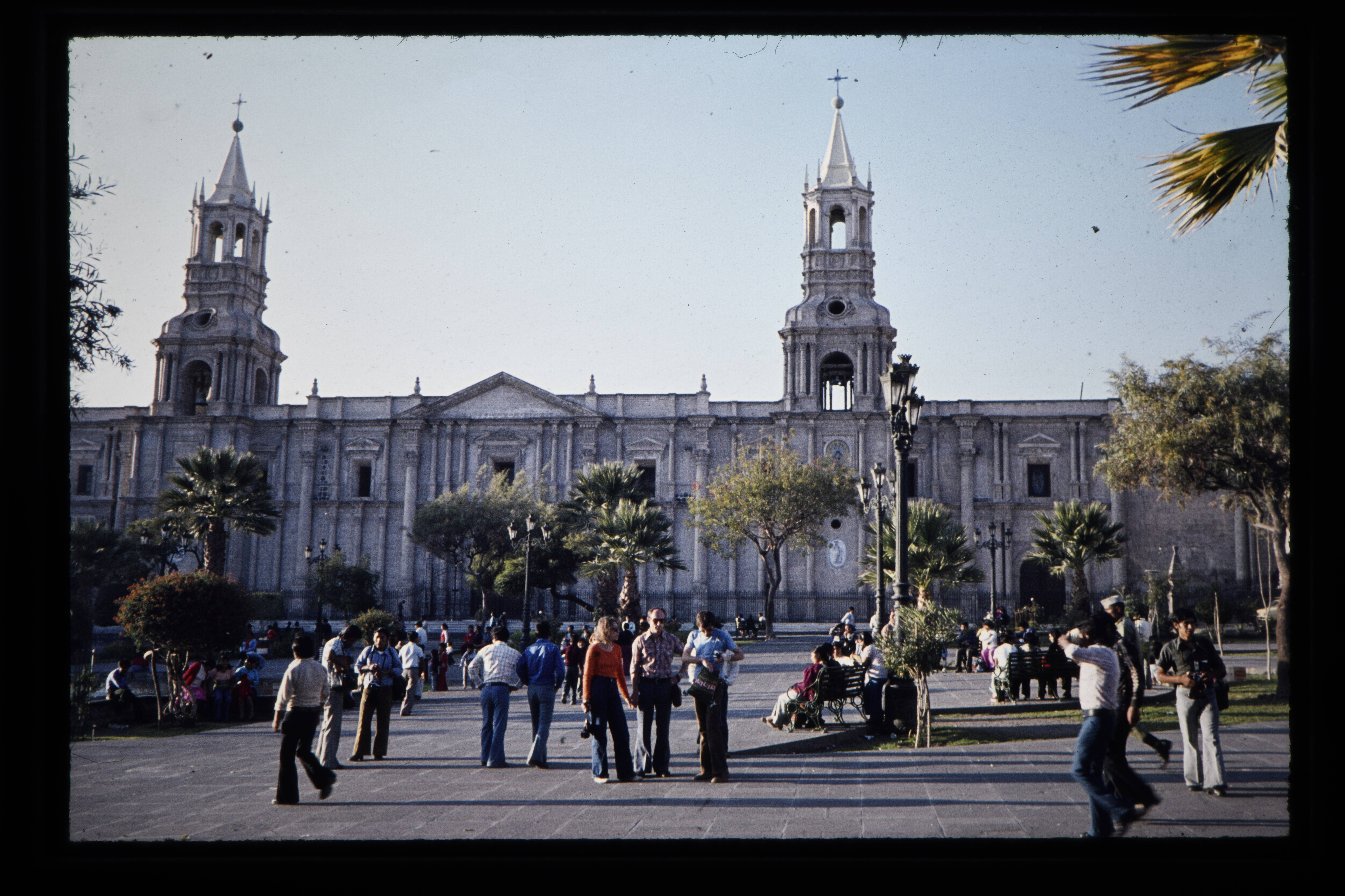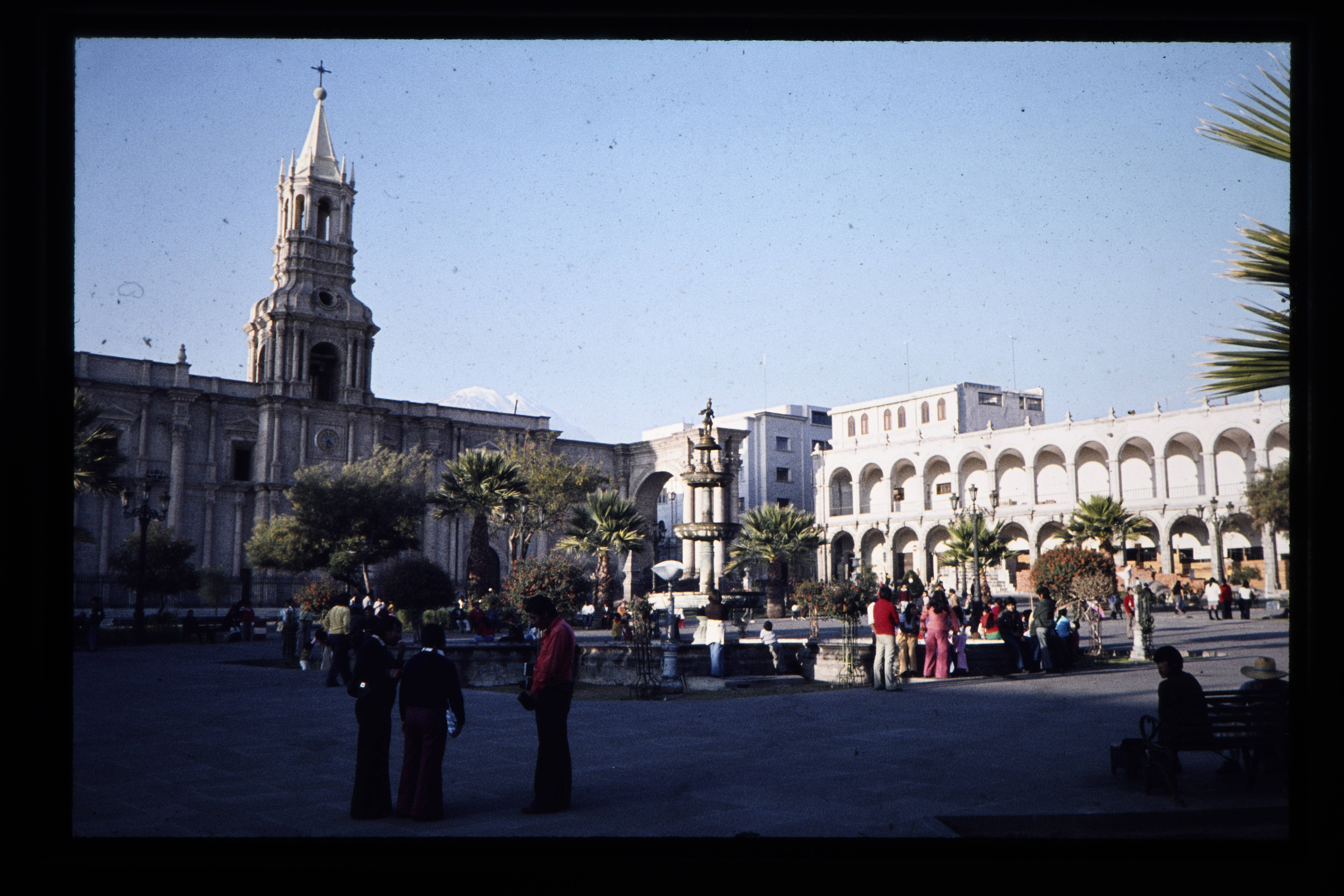 'Het plein voor de kerk te Arequipa.'