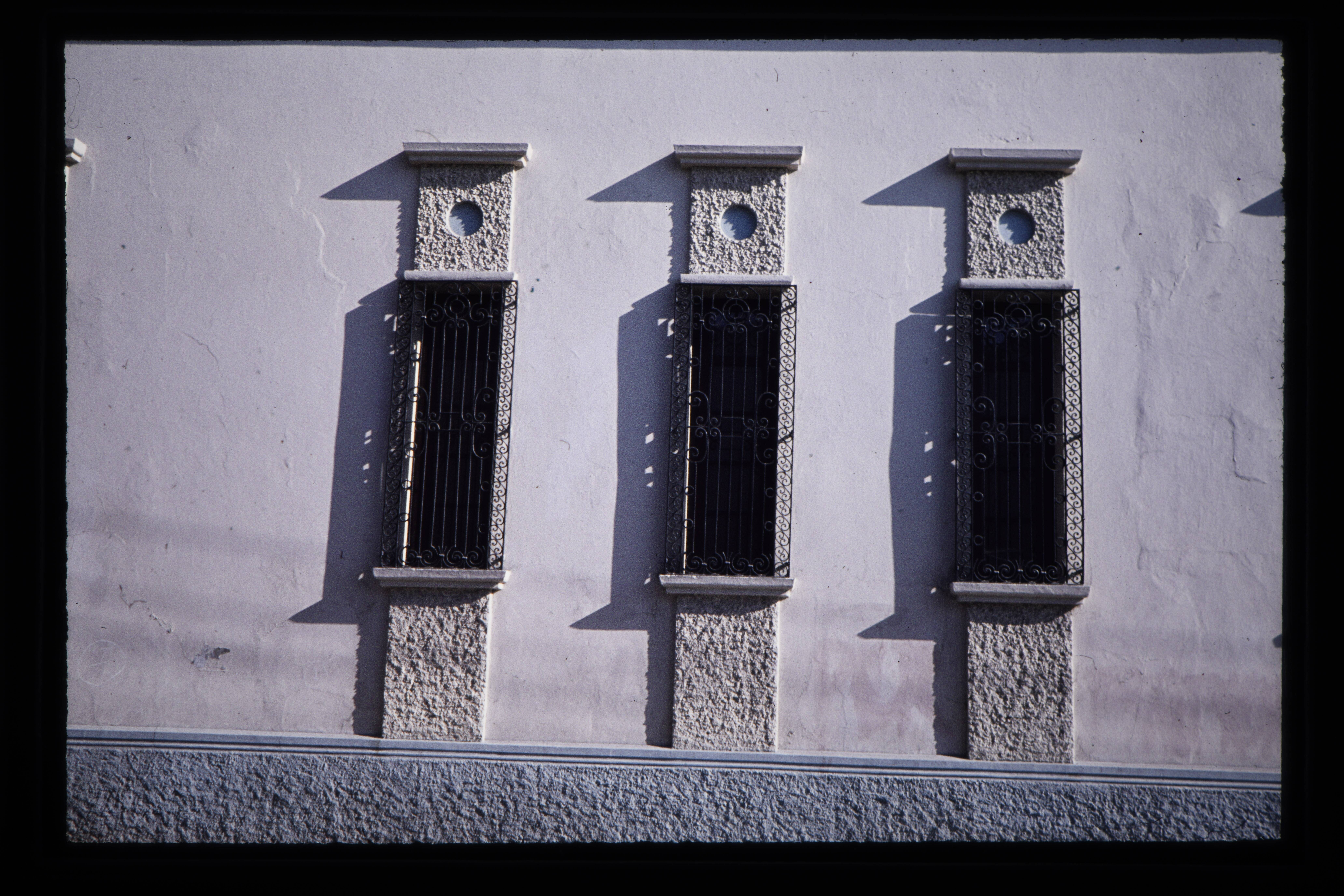 'Oude koloniale woningen met hekwerk voor de ramen.'