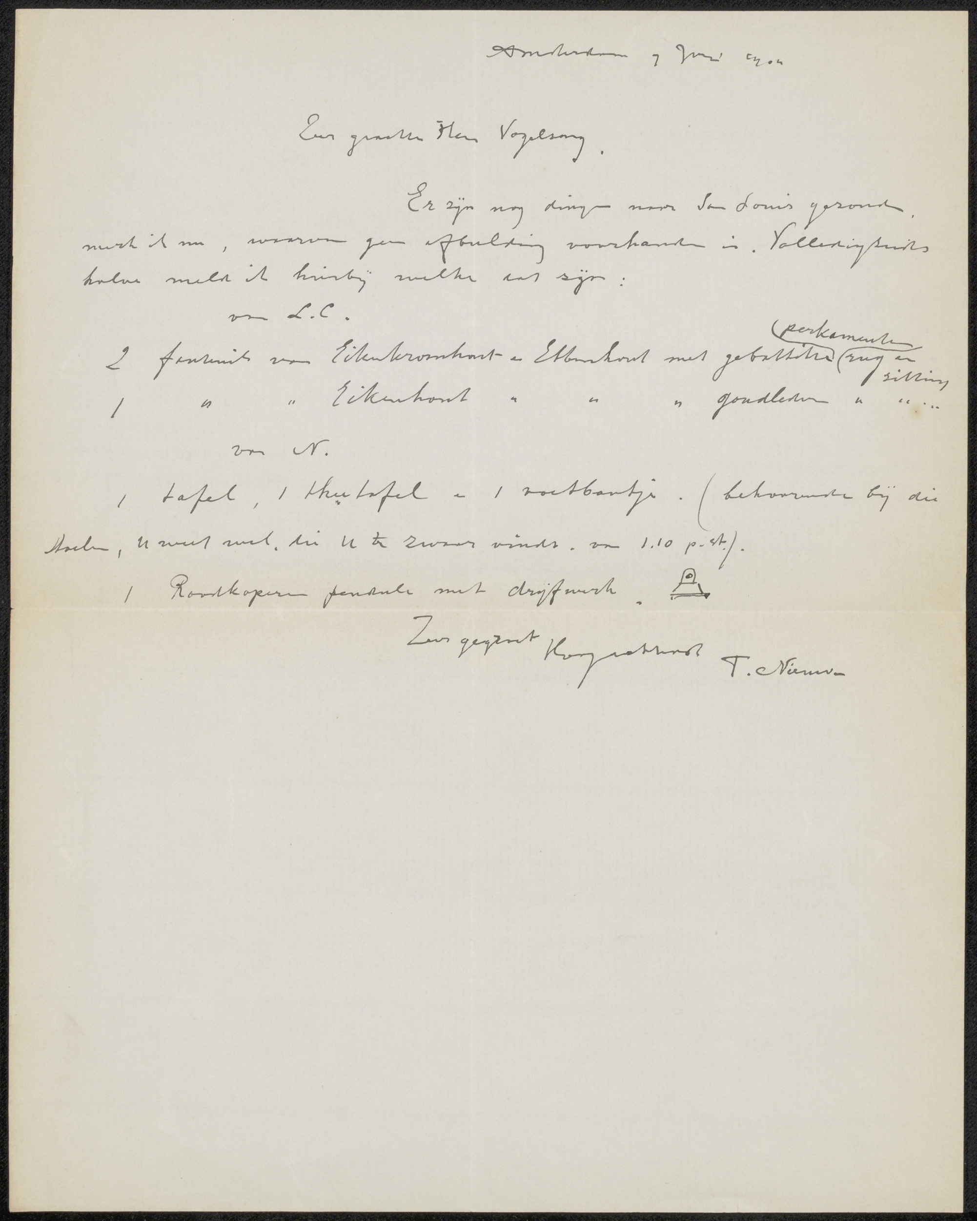 Brief aan Willem Vogelsang