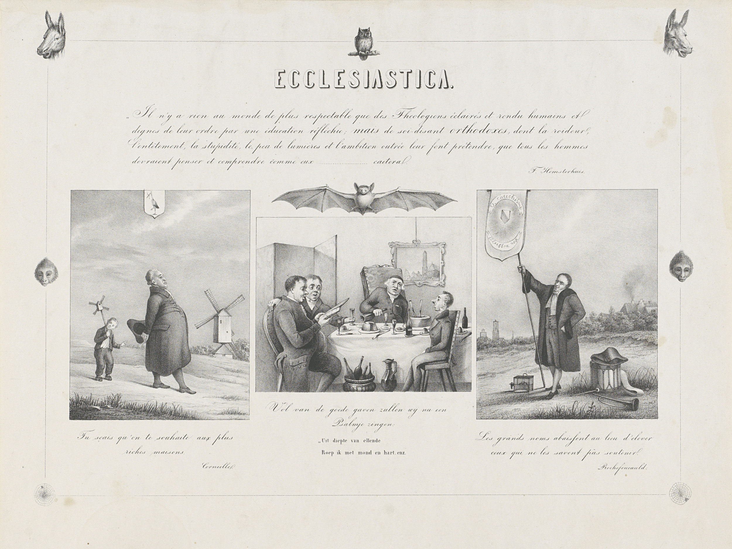 Spotprent op drie predikanten, ca. 1853