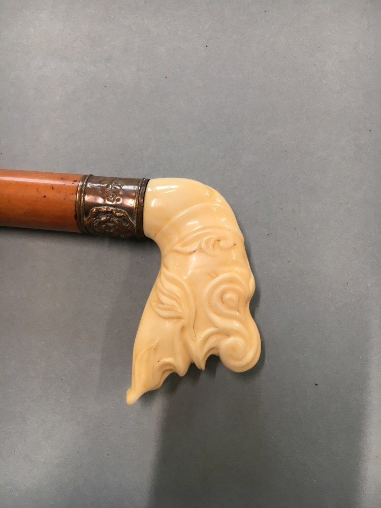 Wandelstok met gesneden ivoren knop, in de vorm van ...