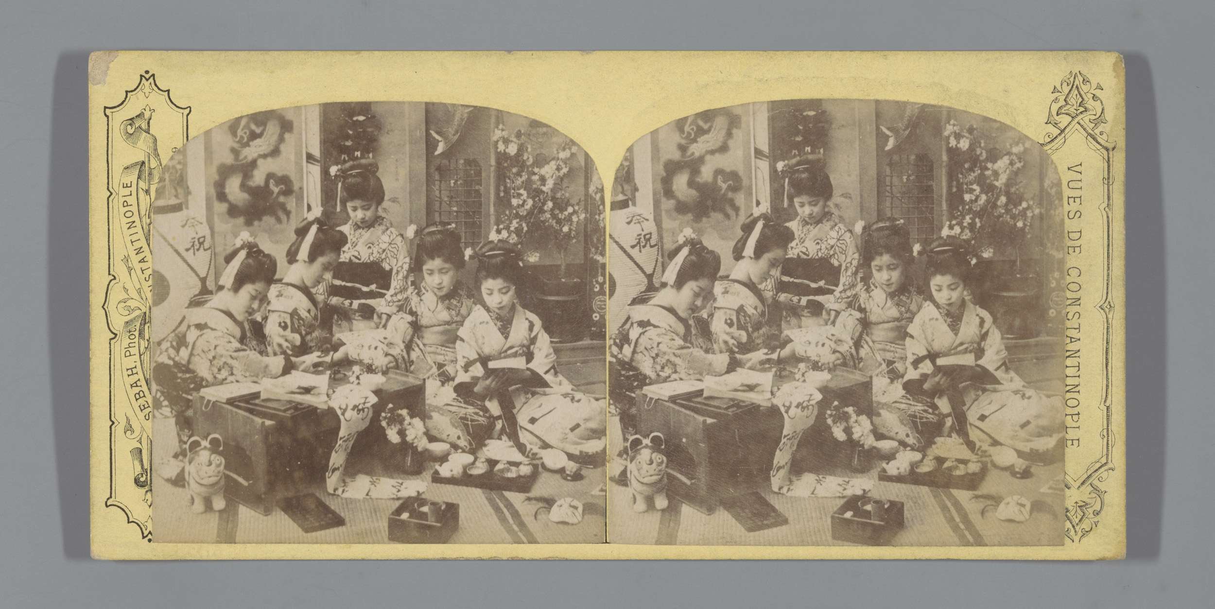 Japans interieur met vijf Japanse meisjes