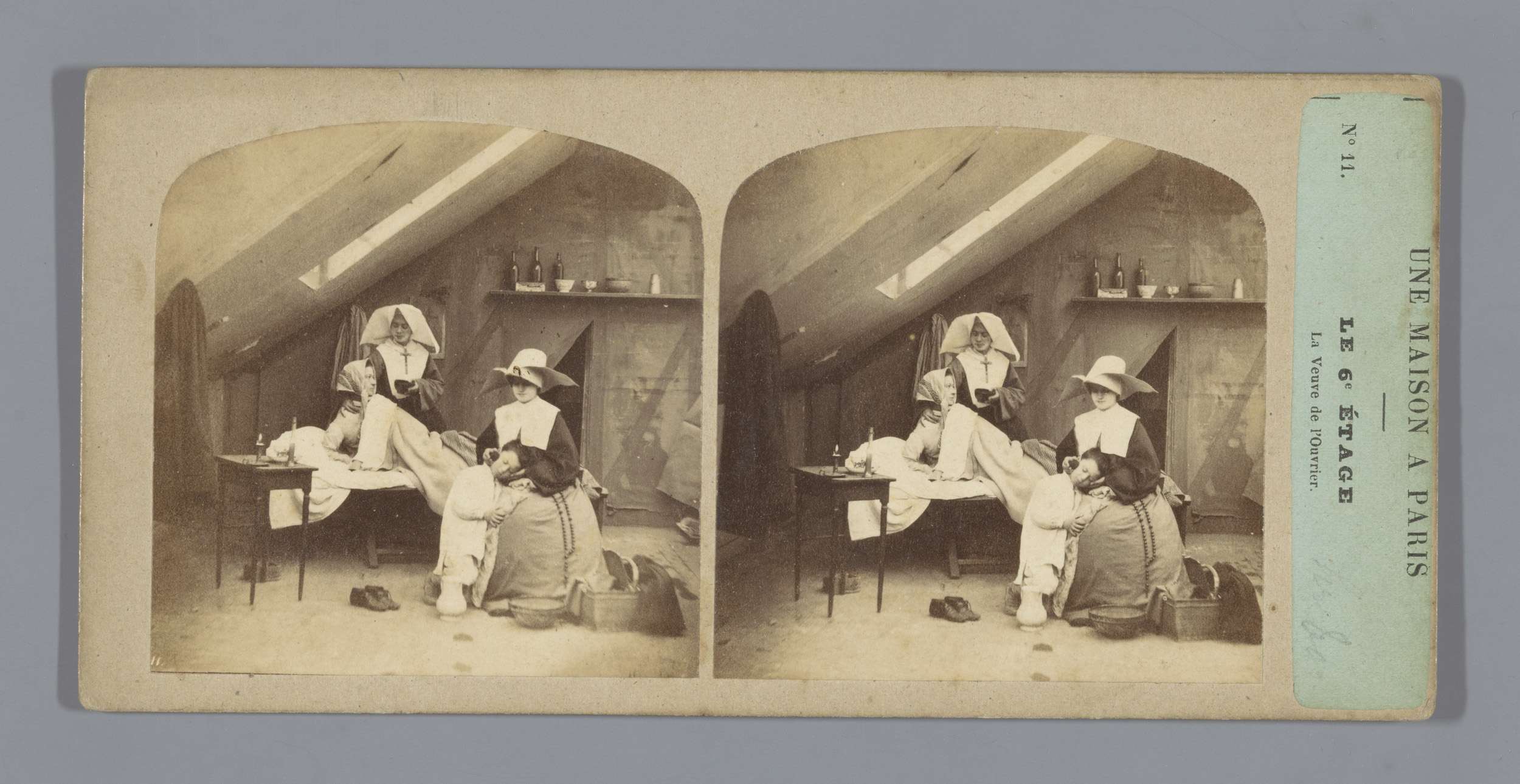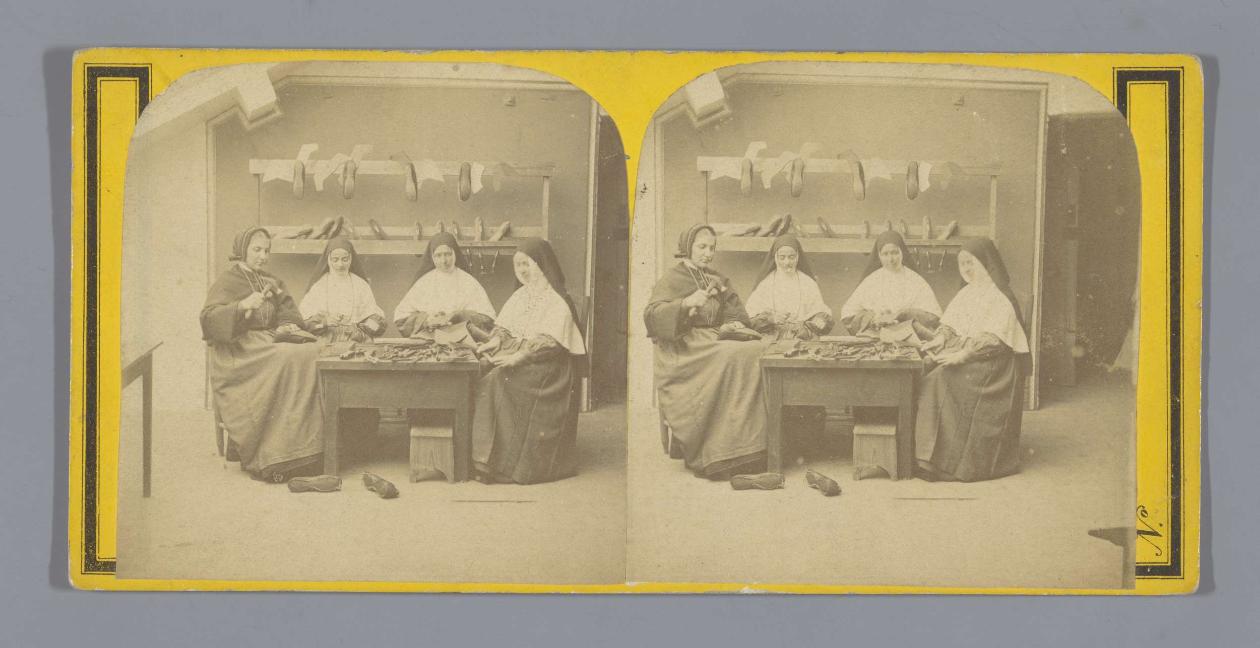 Vier nonnen maken schoenen