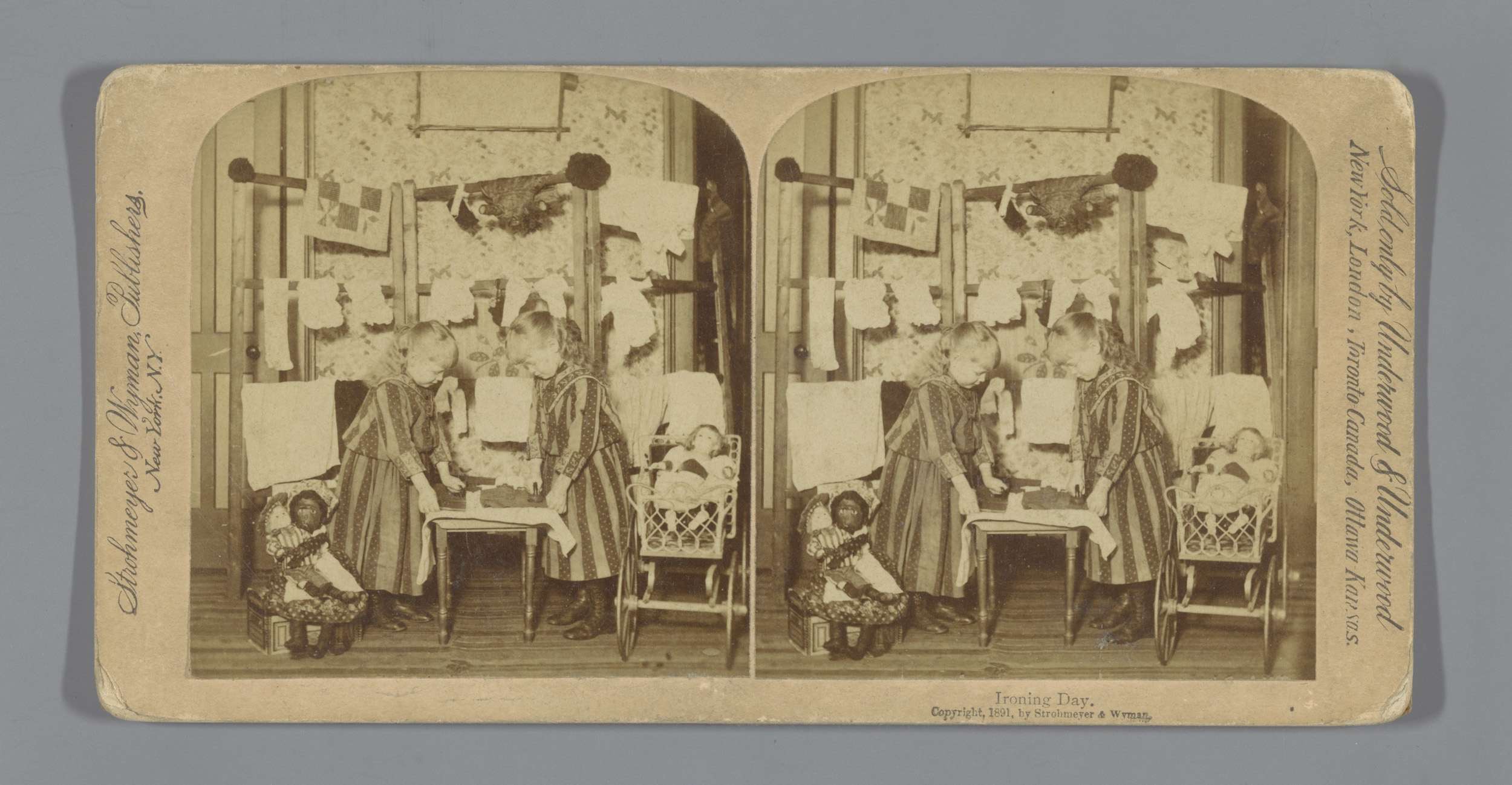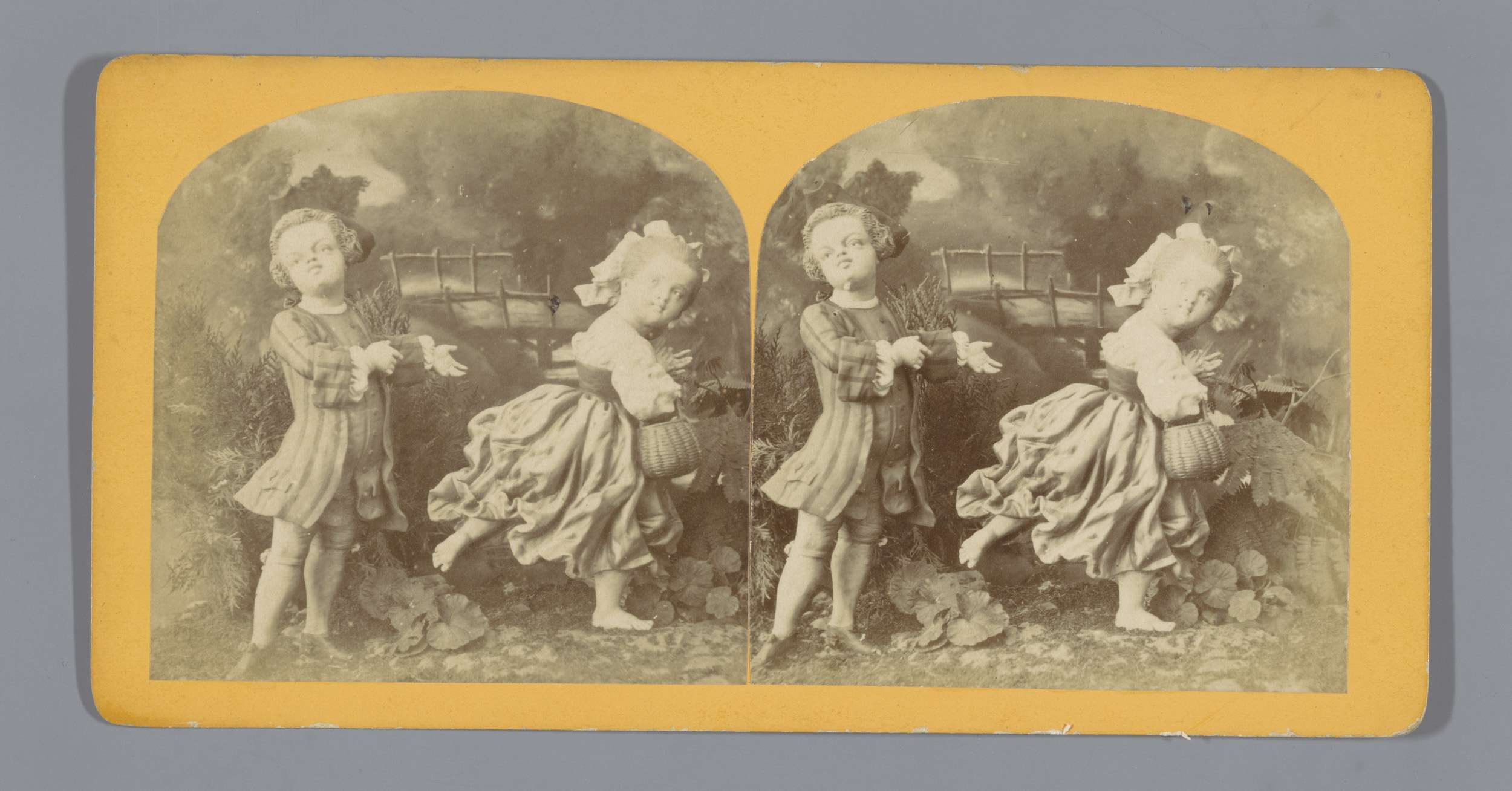 Enscenering met twee poppen, voorstellend een meisje...