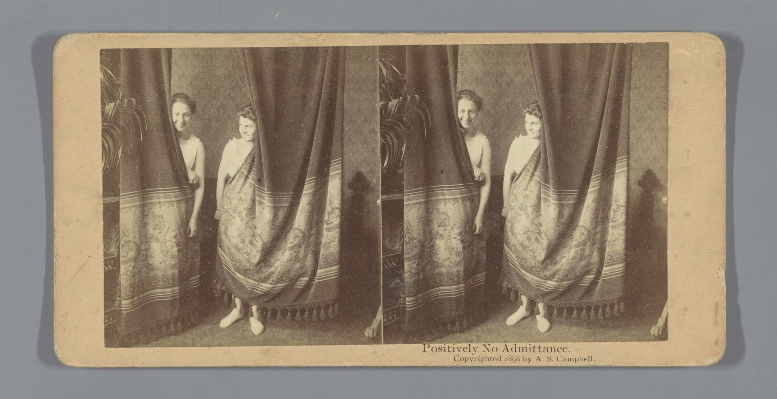 Twee jonge vrouwen in ondergoed verschuilen zich ach...