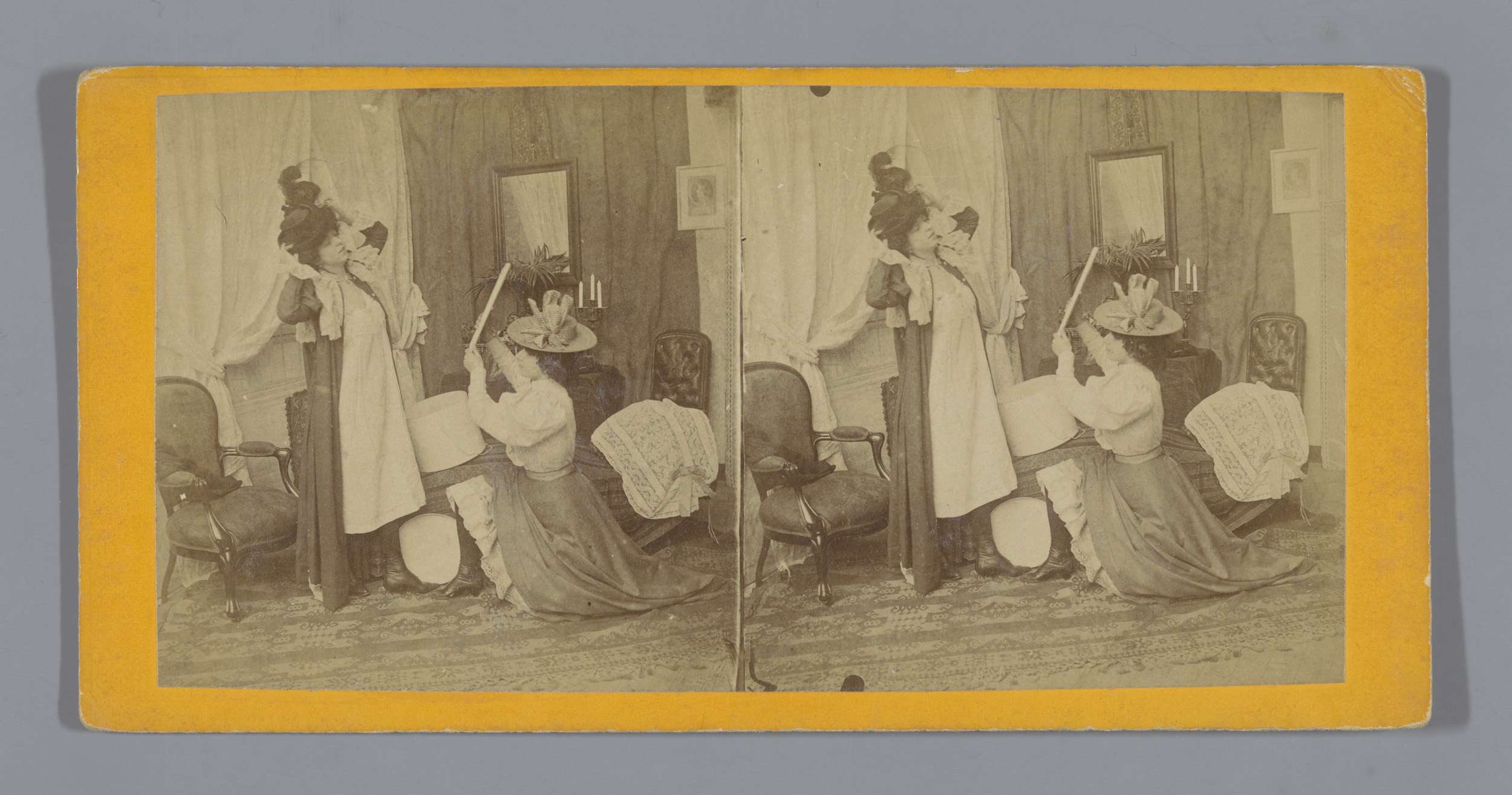 Twee vrouwen passen hoeden