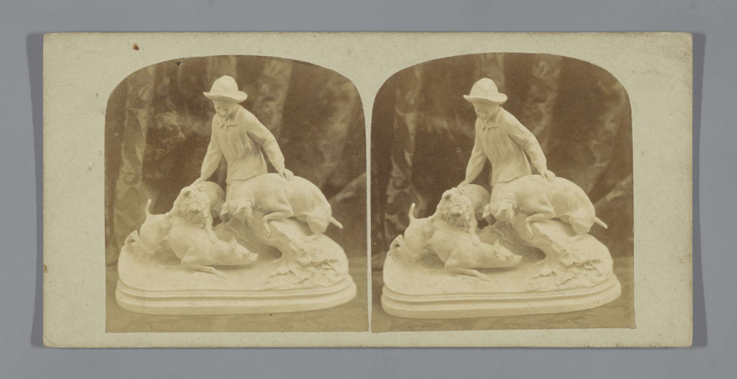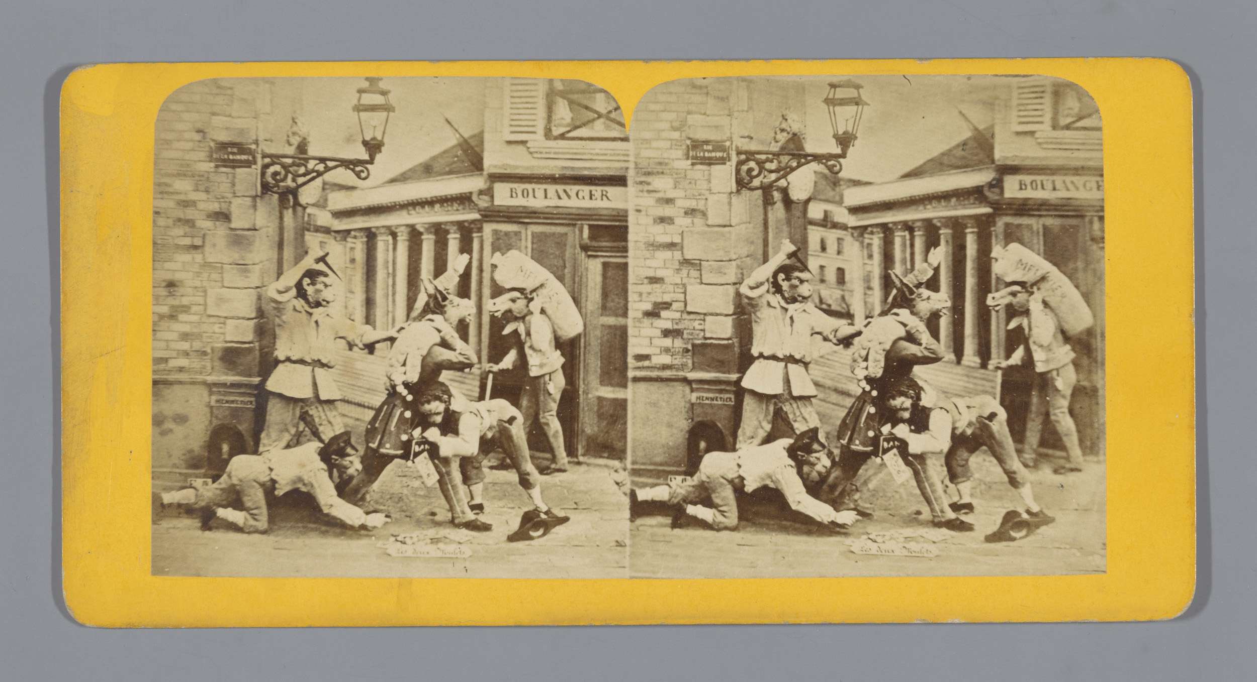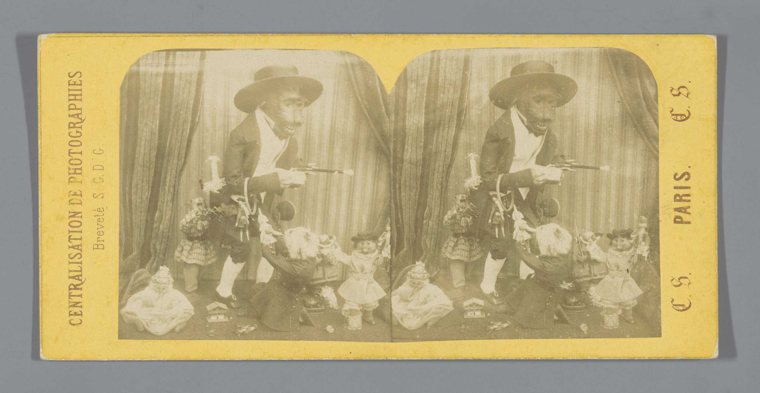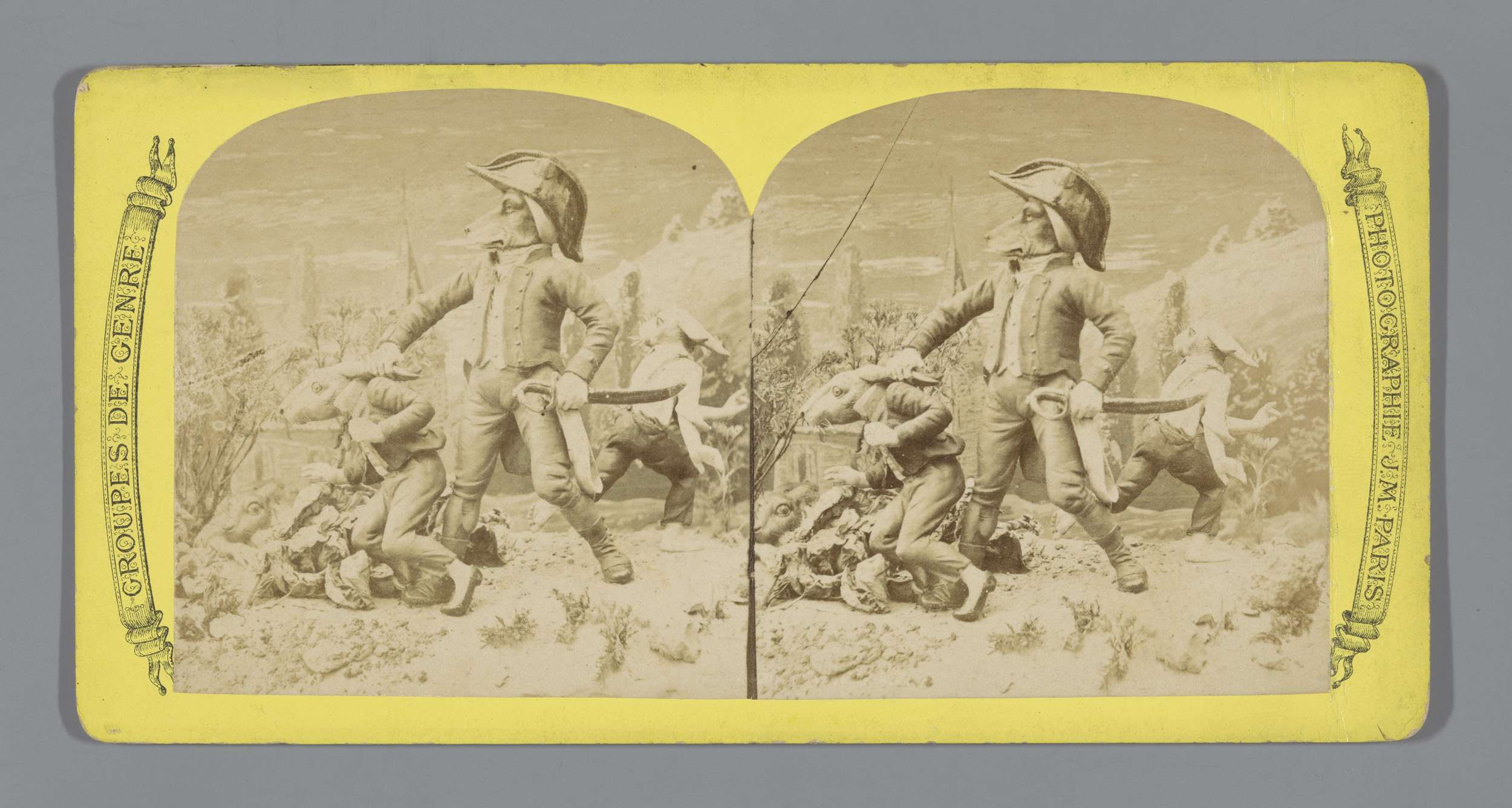 Enscenering met poppen, voorstellend een gevecht van...