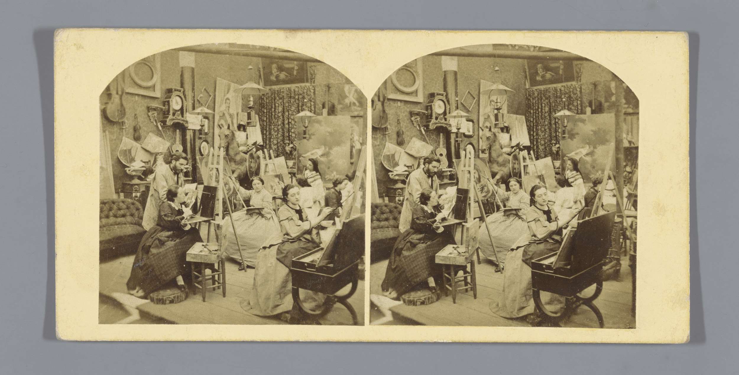 Interieur van een schildersatelier met schilderende ...