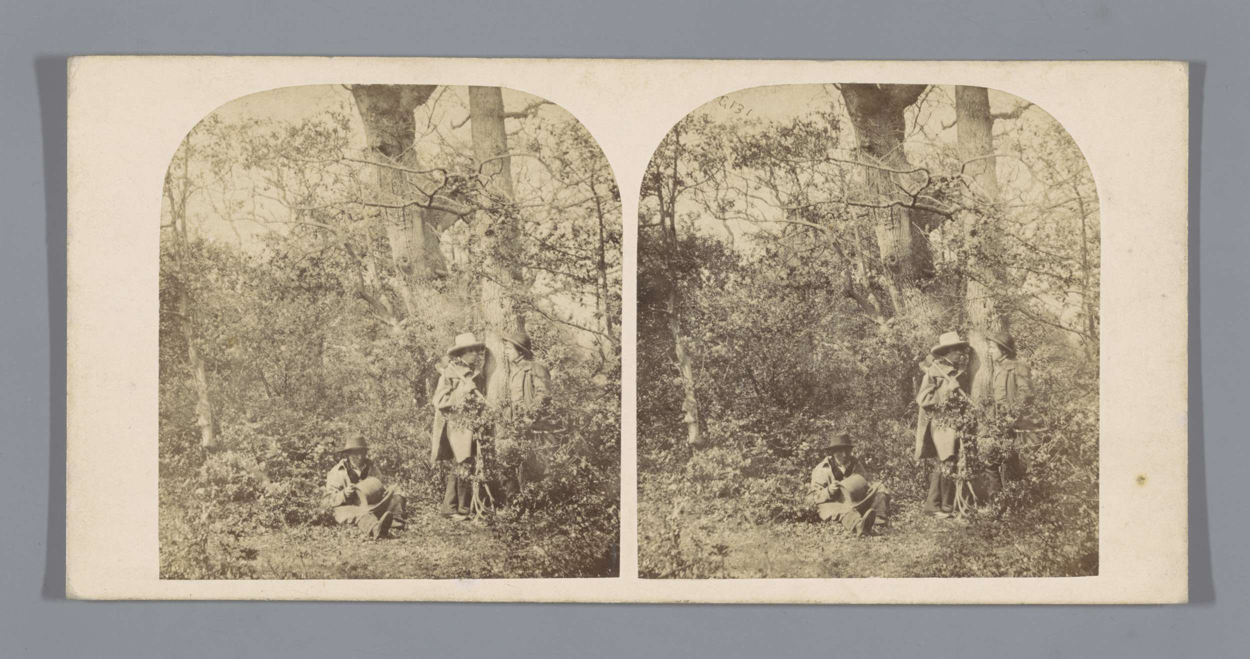 Drie mannen in een bos