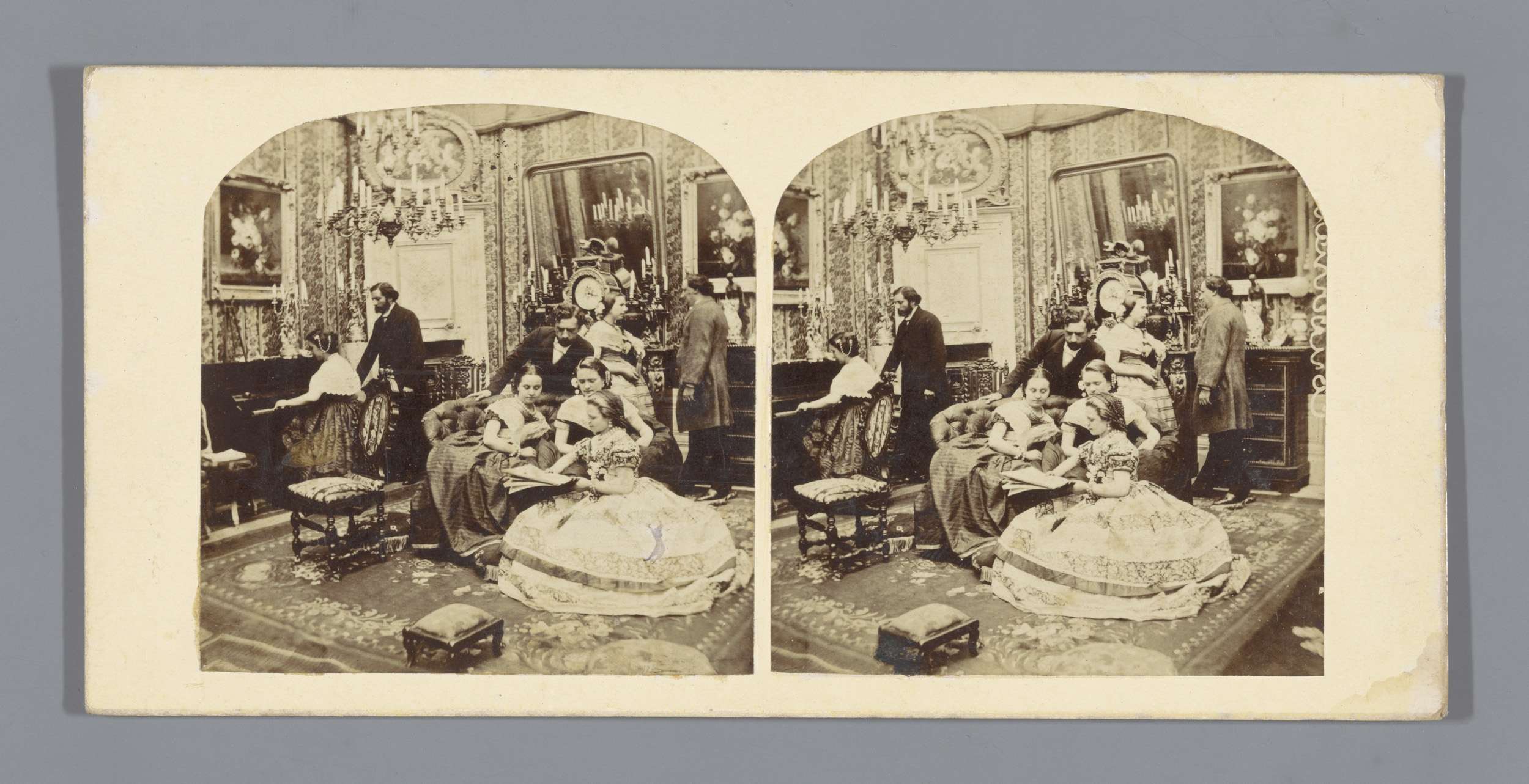 Gezelschap in een kamer met een piano