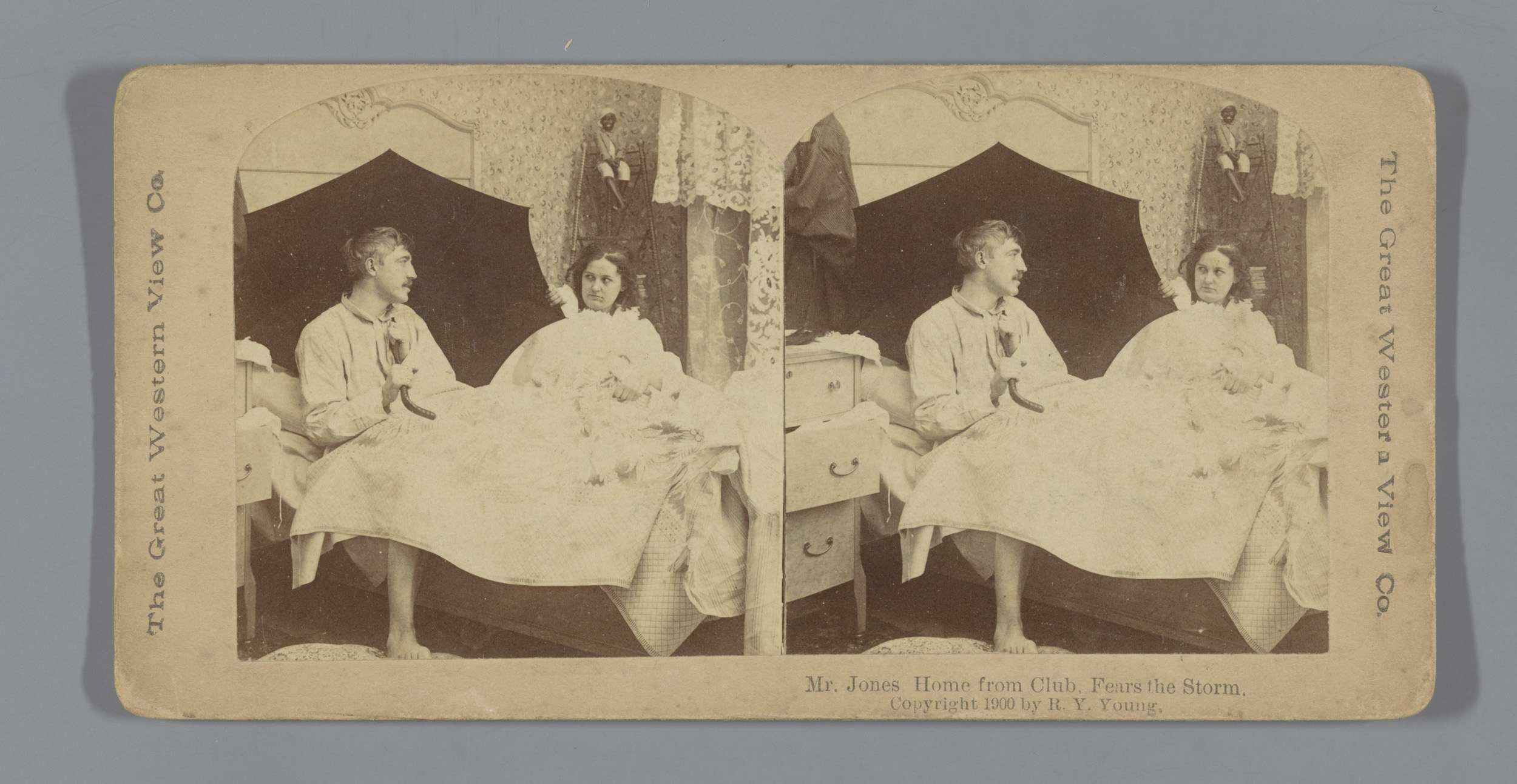 Echtpaar in bed met paraplu