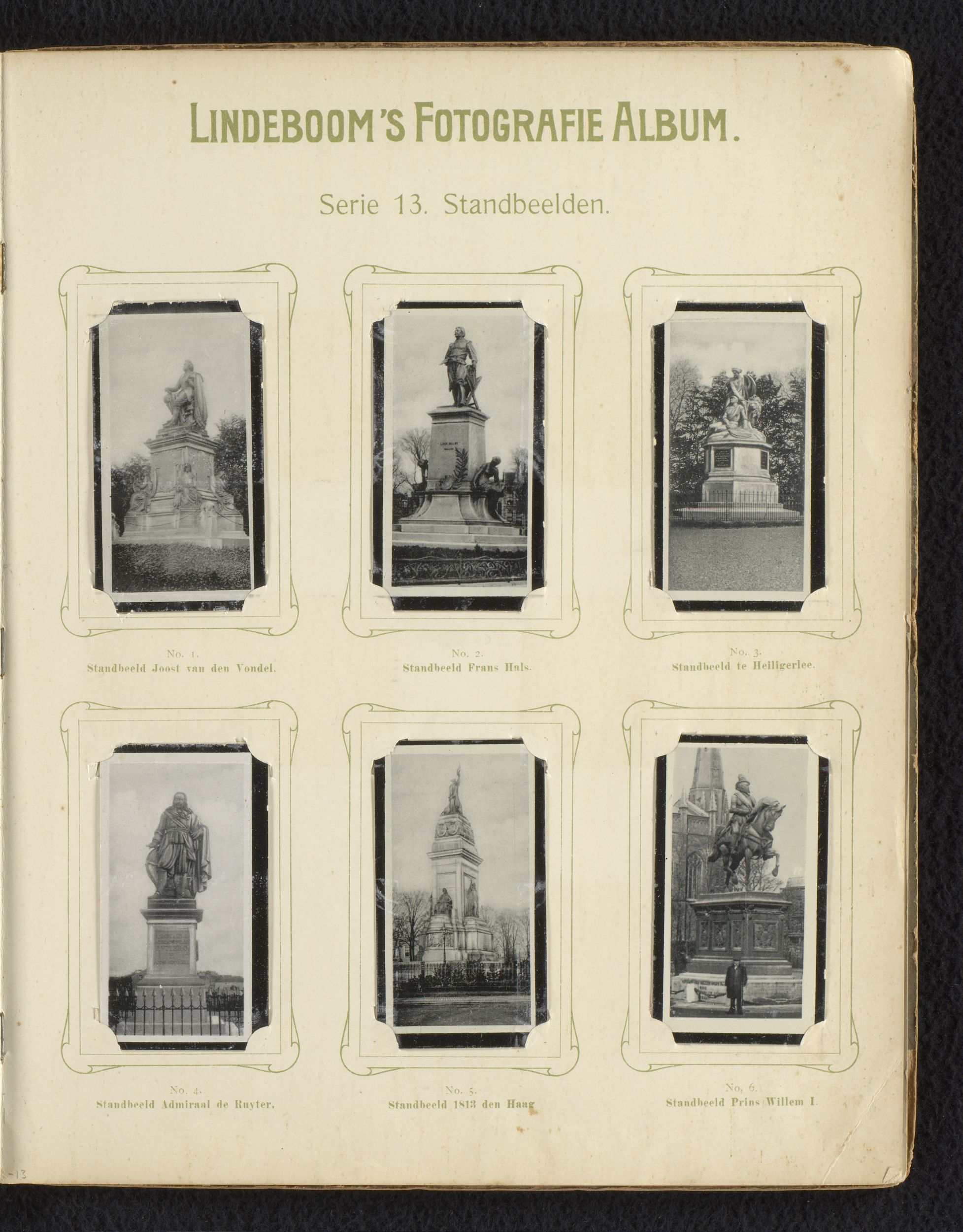 Zes reproducties van foto's van standbeelden in Nede...