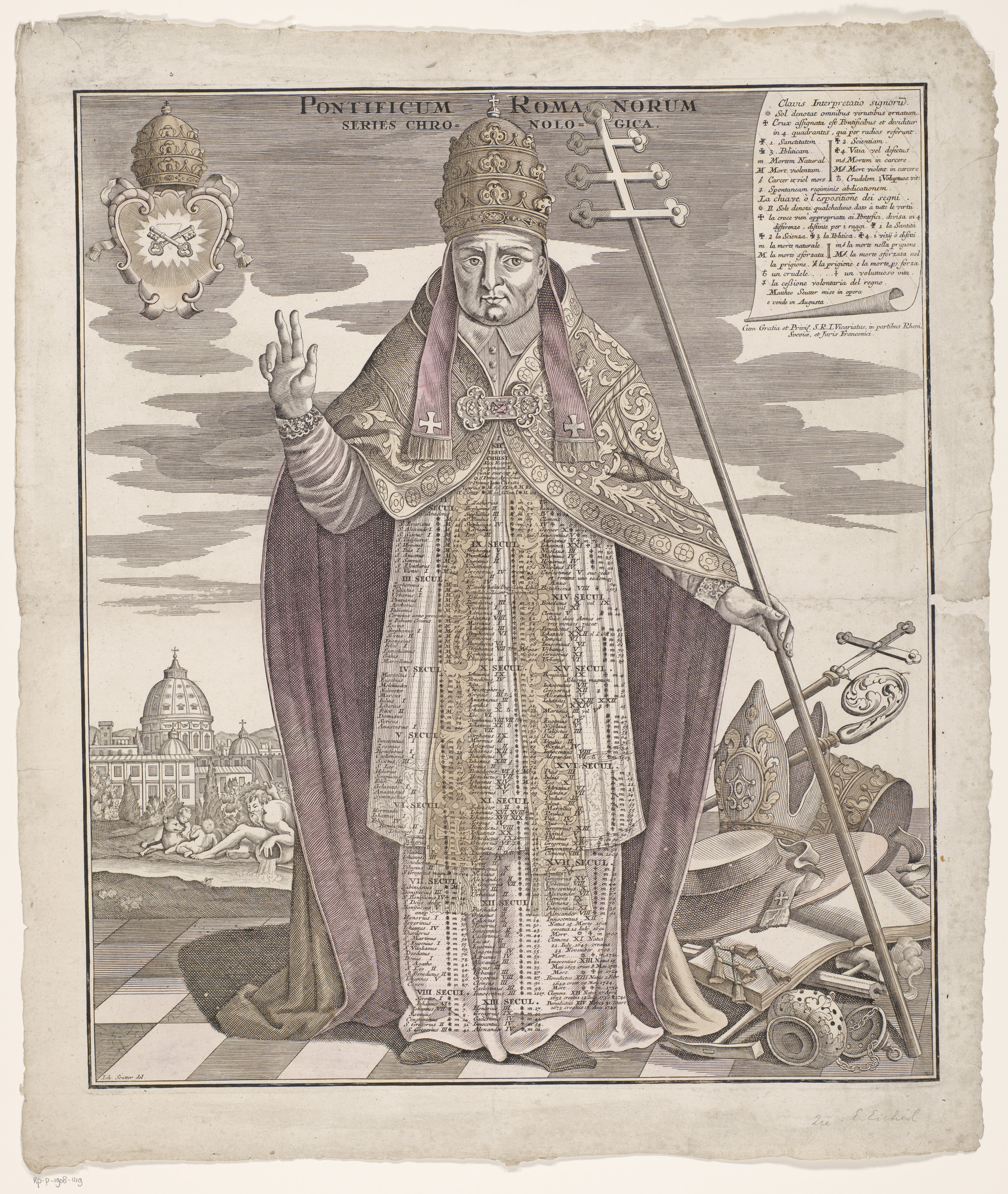 Paus met tijdlijn van pauzen op zijn gewaad
