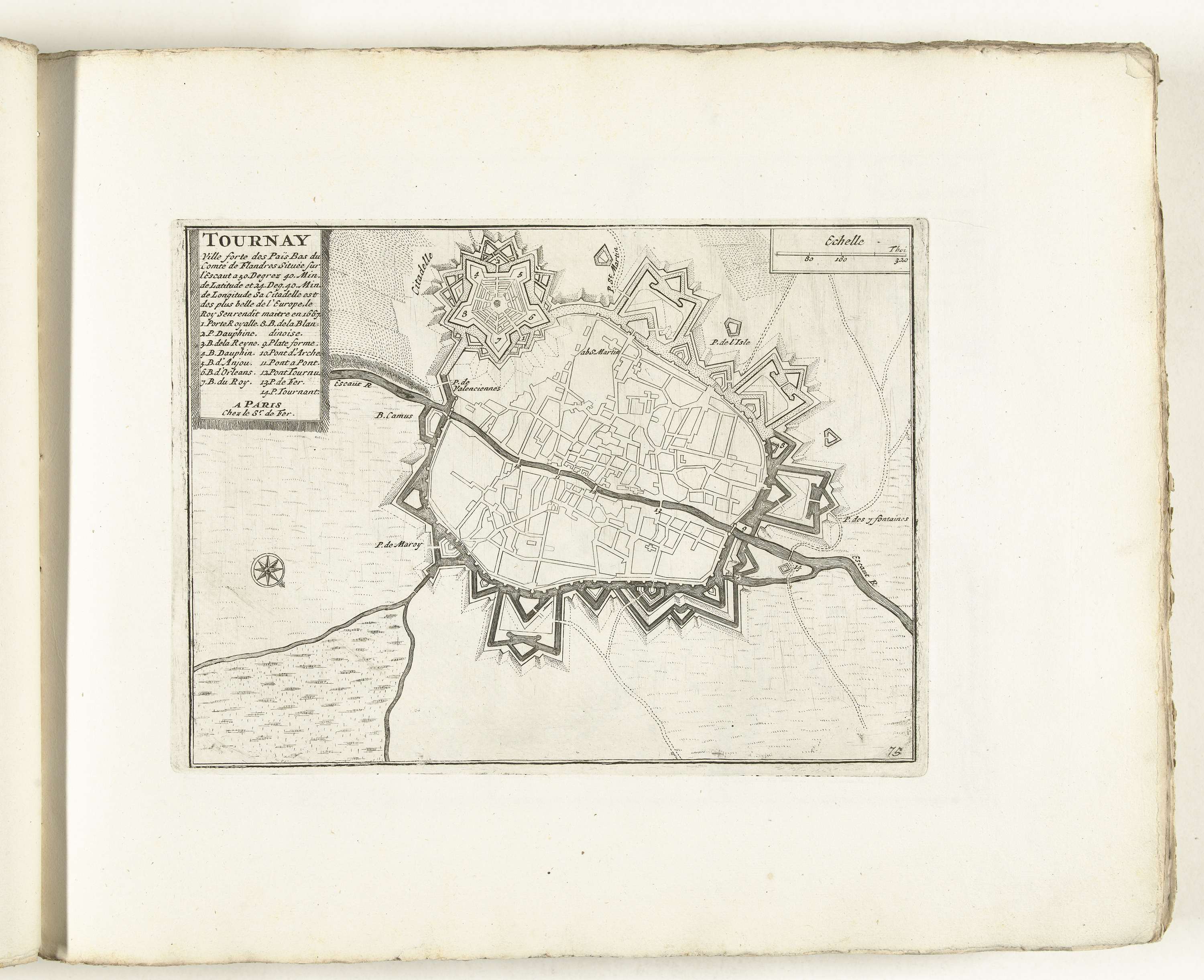 Plattegrond van Tournai, ca. 1702