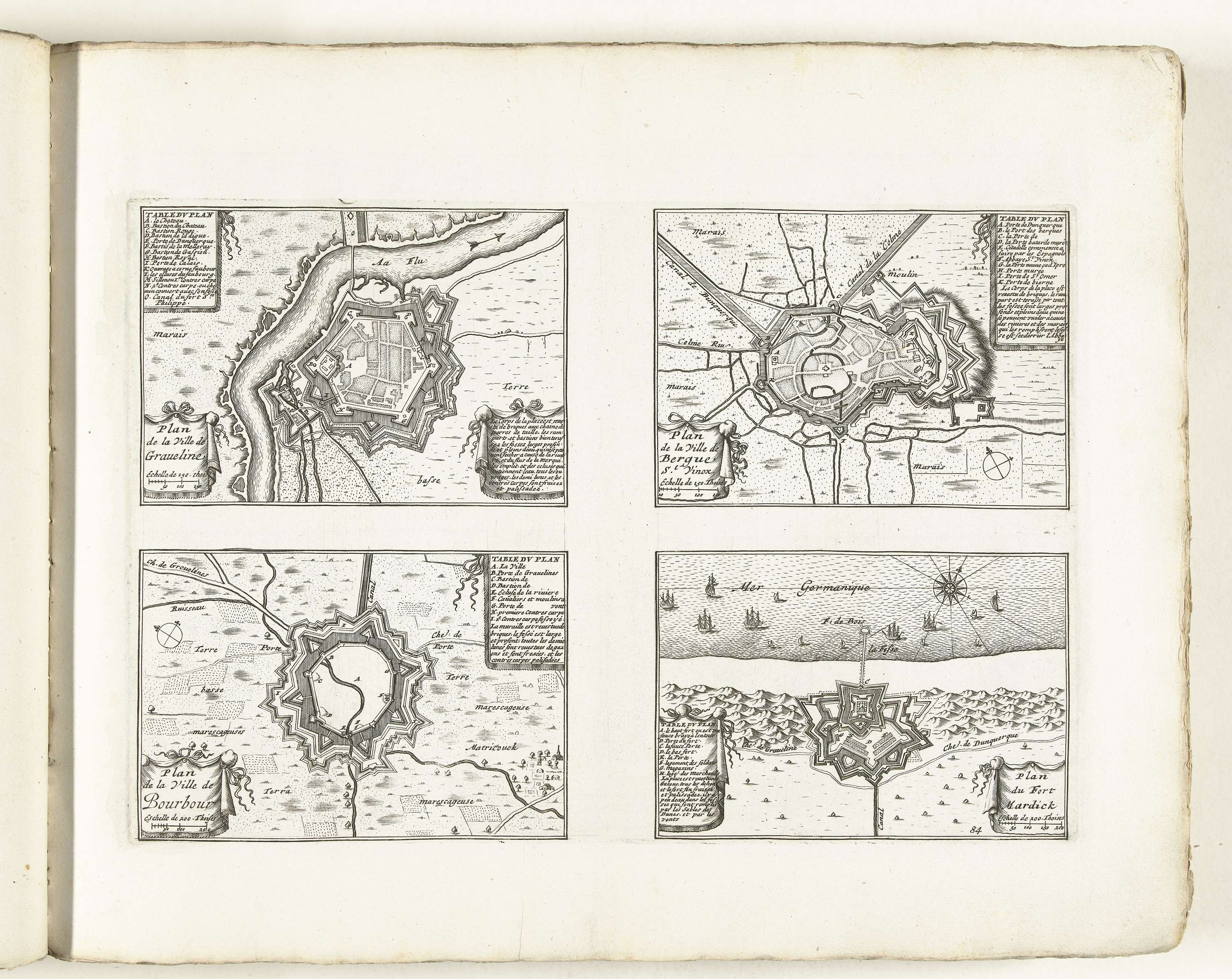 Plattegronden van Gravelines, Bergues, Bourbourg en ...