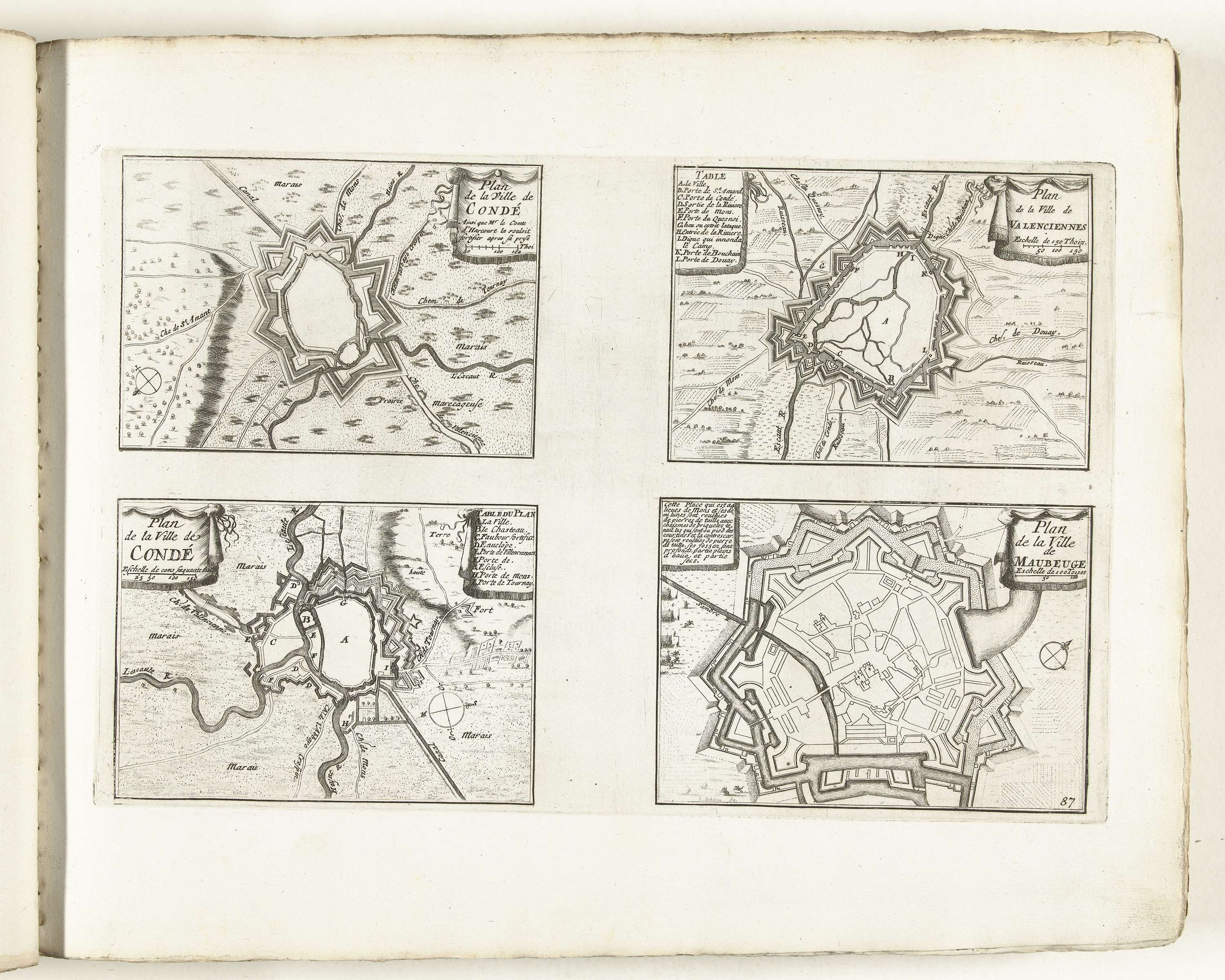 Plattegronden van Condé, Valenciennes en Maubeuge, c...