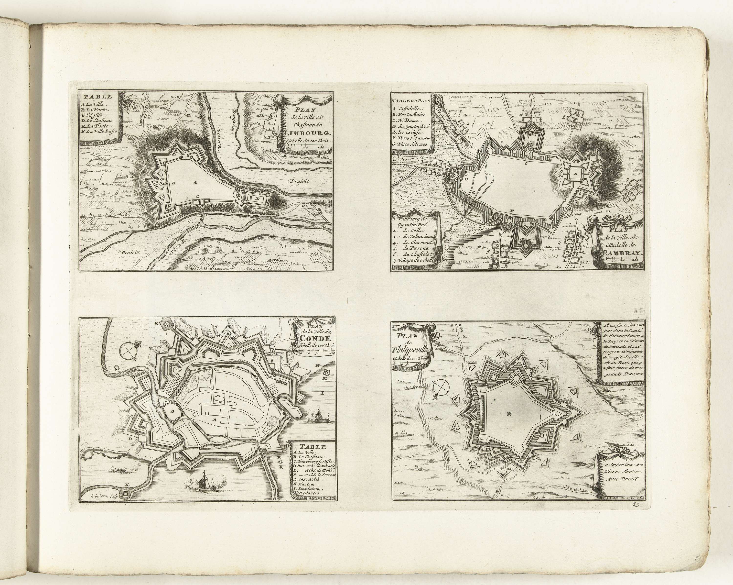 Plattegronden van Limbourg, Cambrai, Condé en Philip...