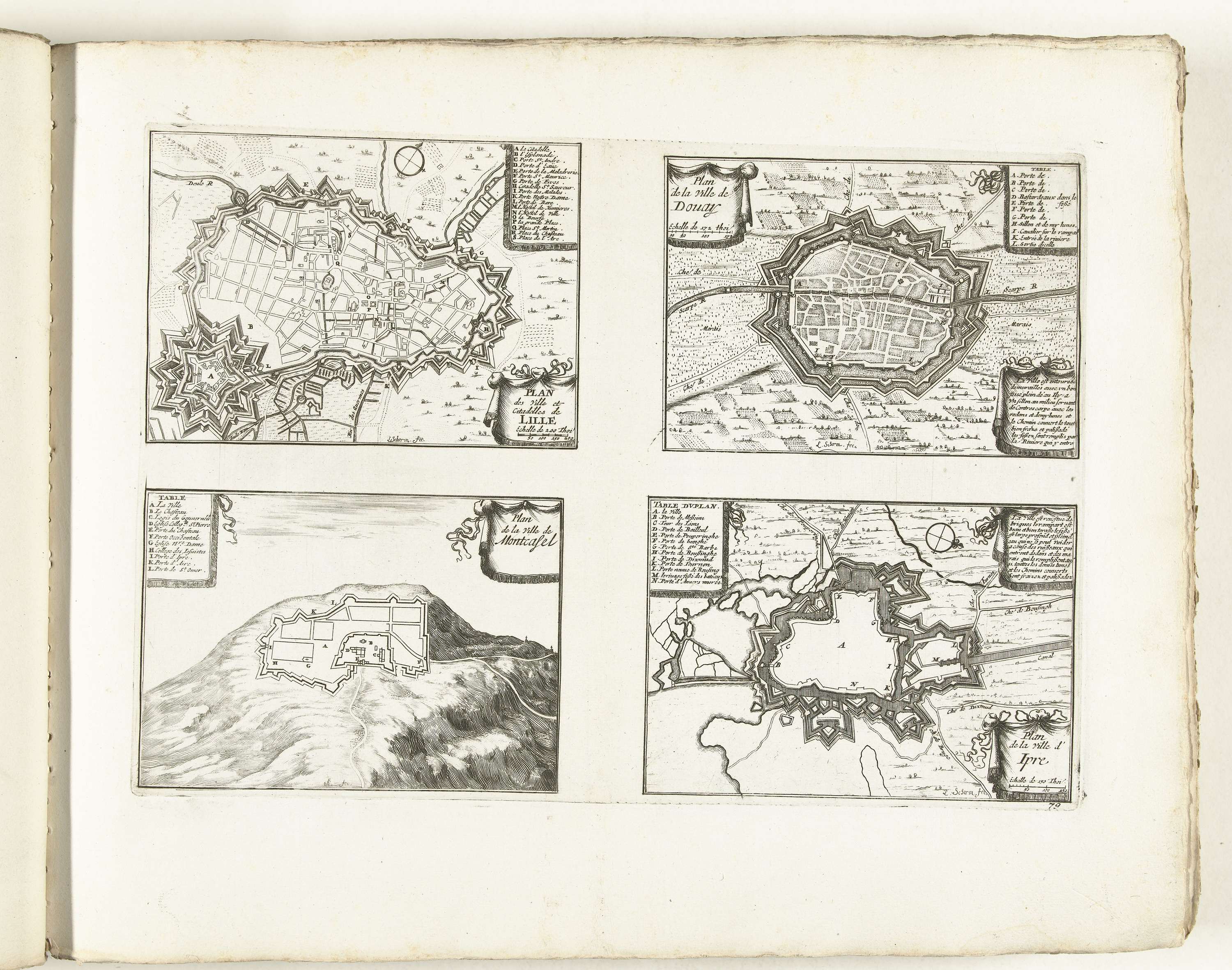 Plattegronden van Lille, Douai, Montcassel en Yperen...