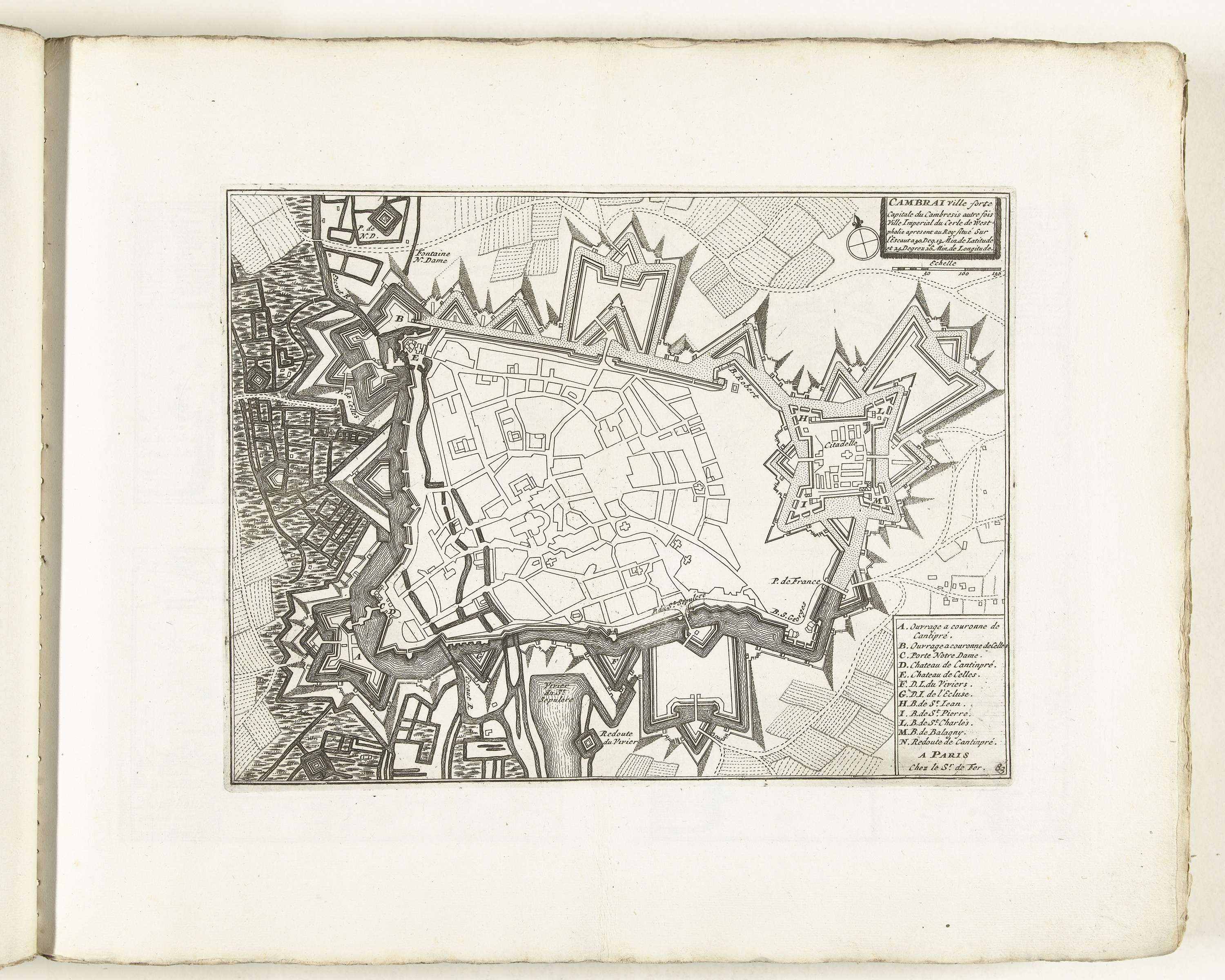 Plattegrond van Cambrai, ca. 1702