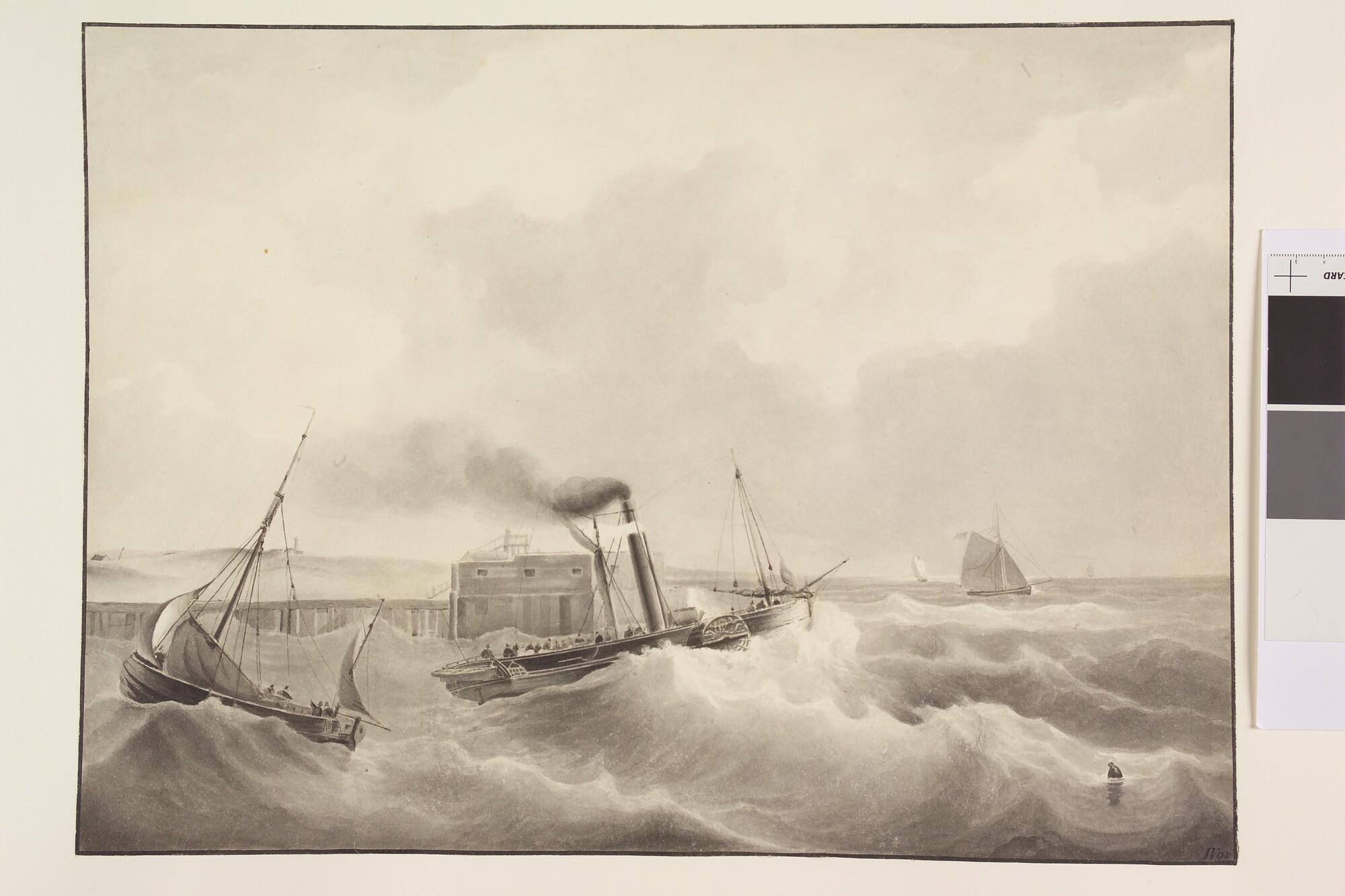 Een raderstoomschip de haven uitvarend