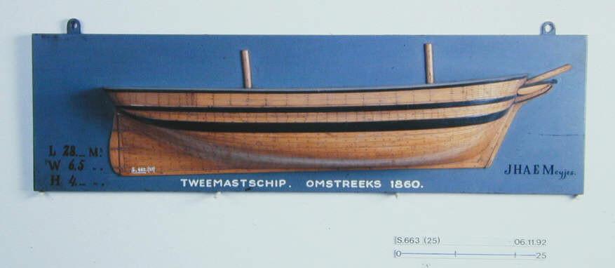 Halfmodel van een tweemast koopvaardijschip