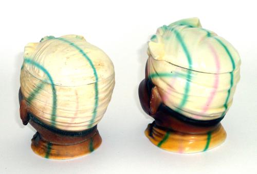 Tabakspotjes. Tabakspotjes van porselein met figura...