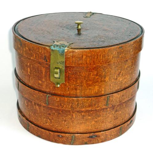 Tabakspotten, drie stuks. Houten ronde potten in de...