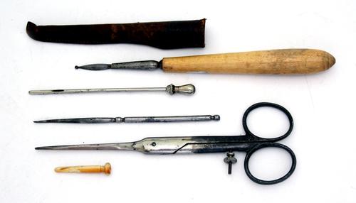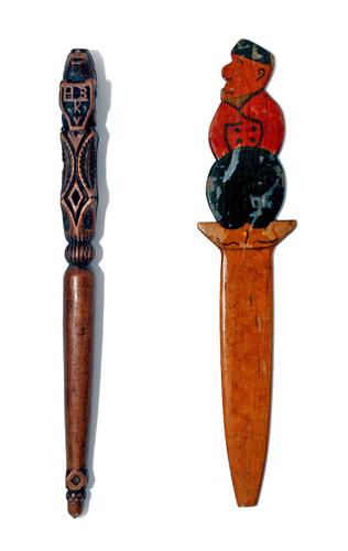 Houten Breinaalden houder en briefopener.