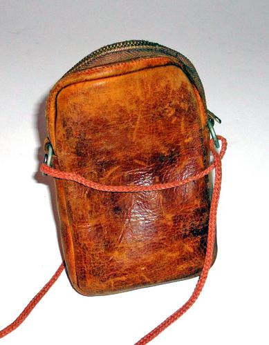 Tabakszak. Bruin lederen zak, aan de onderzijde vas...