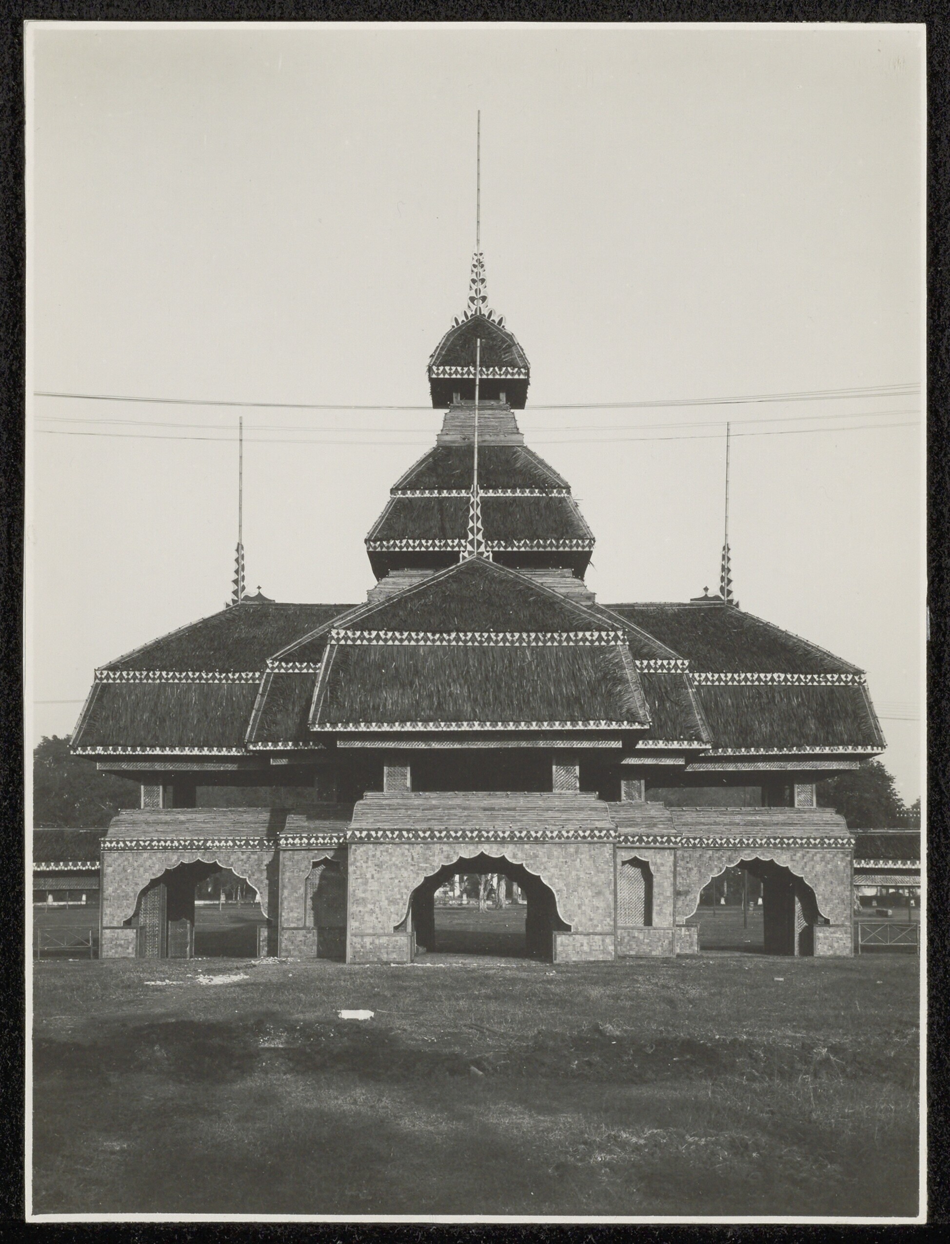 Paviljoen met de hoofdingang van de Pasar Gambir op ...