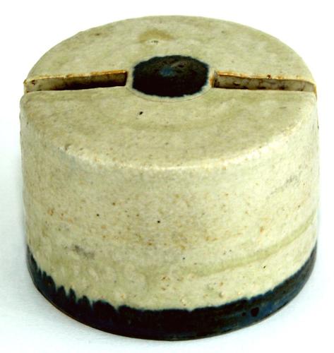 Spaarpot. ‘Mobach’ Platte ronde, crème aardewerken ...