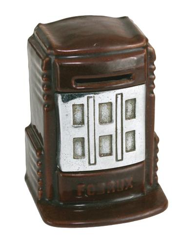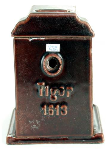 Kolenkachel spaarpot. IJzeren hoge bruin geglazuurd...