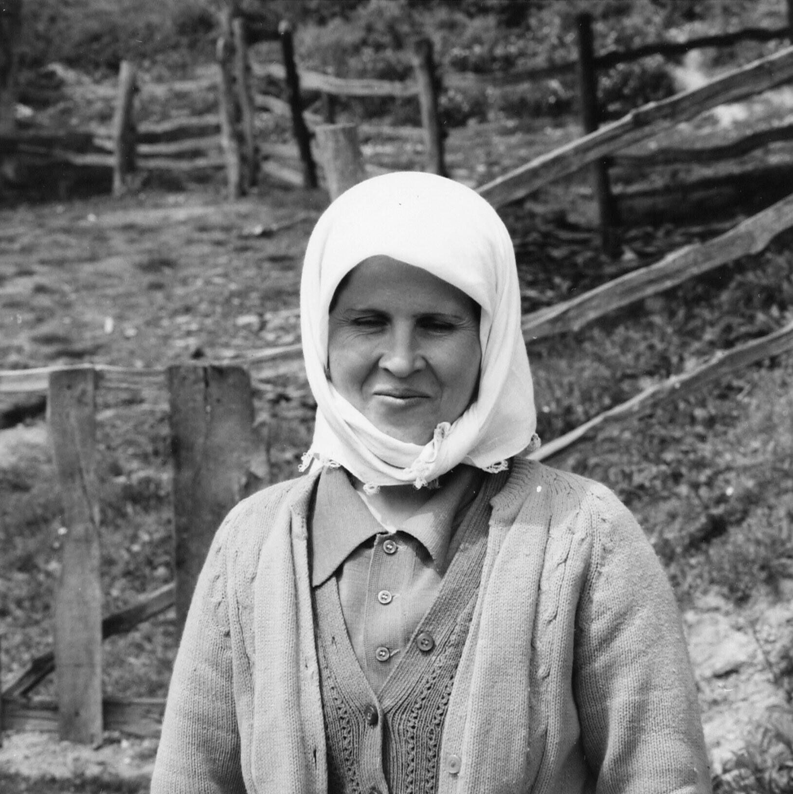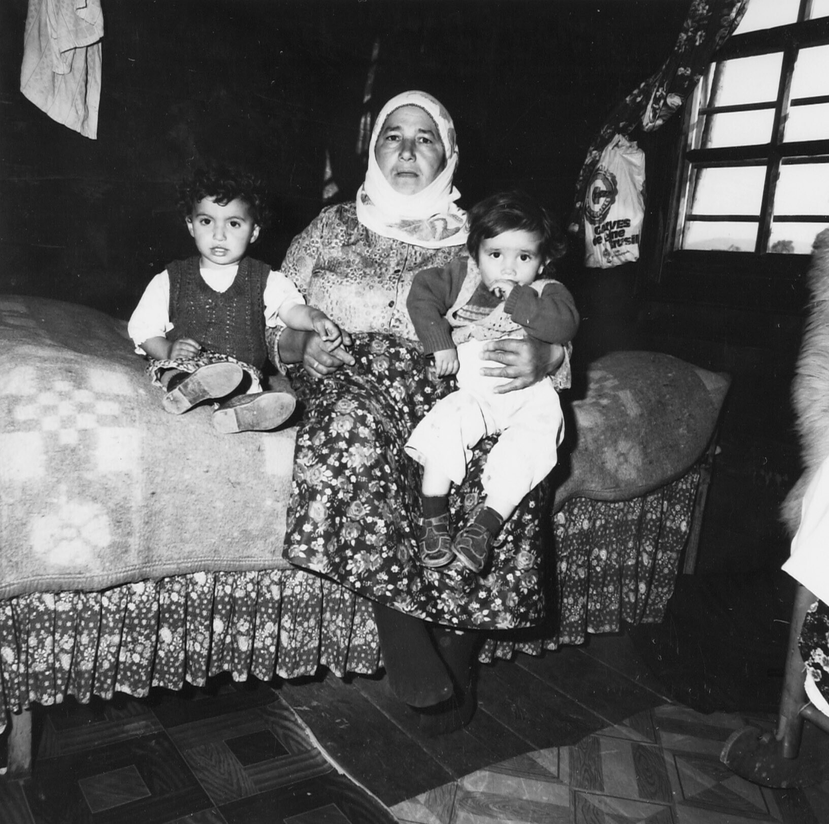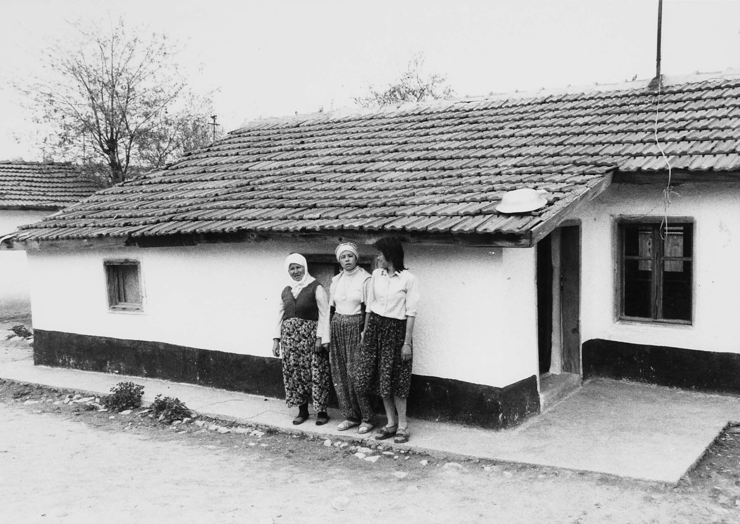 Vrouwen poserend voor een type woning afkomstig uit ...