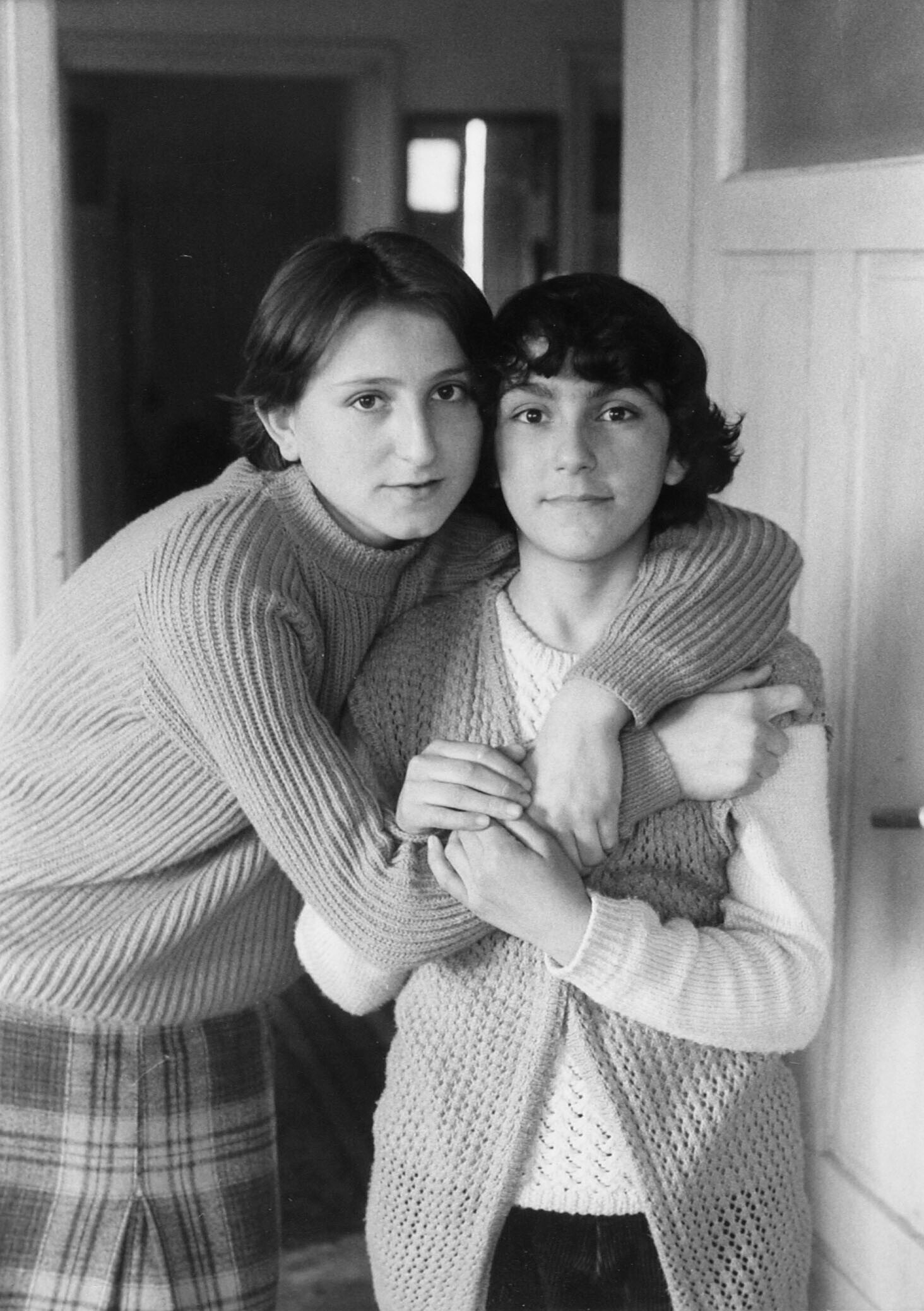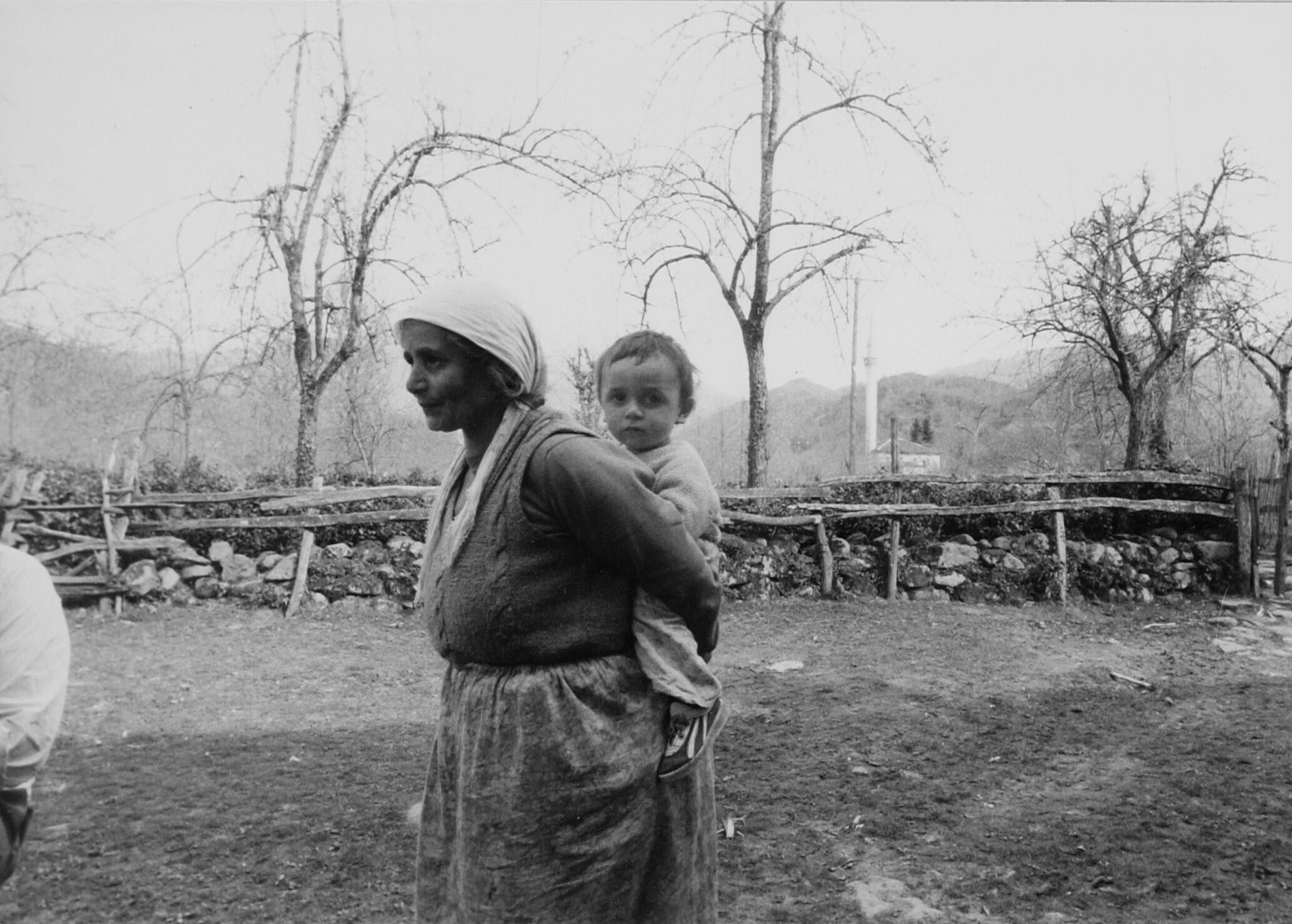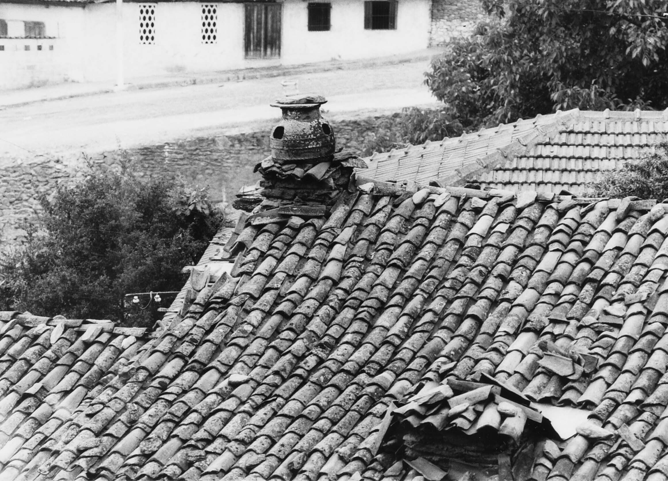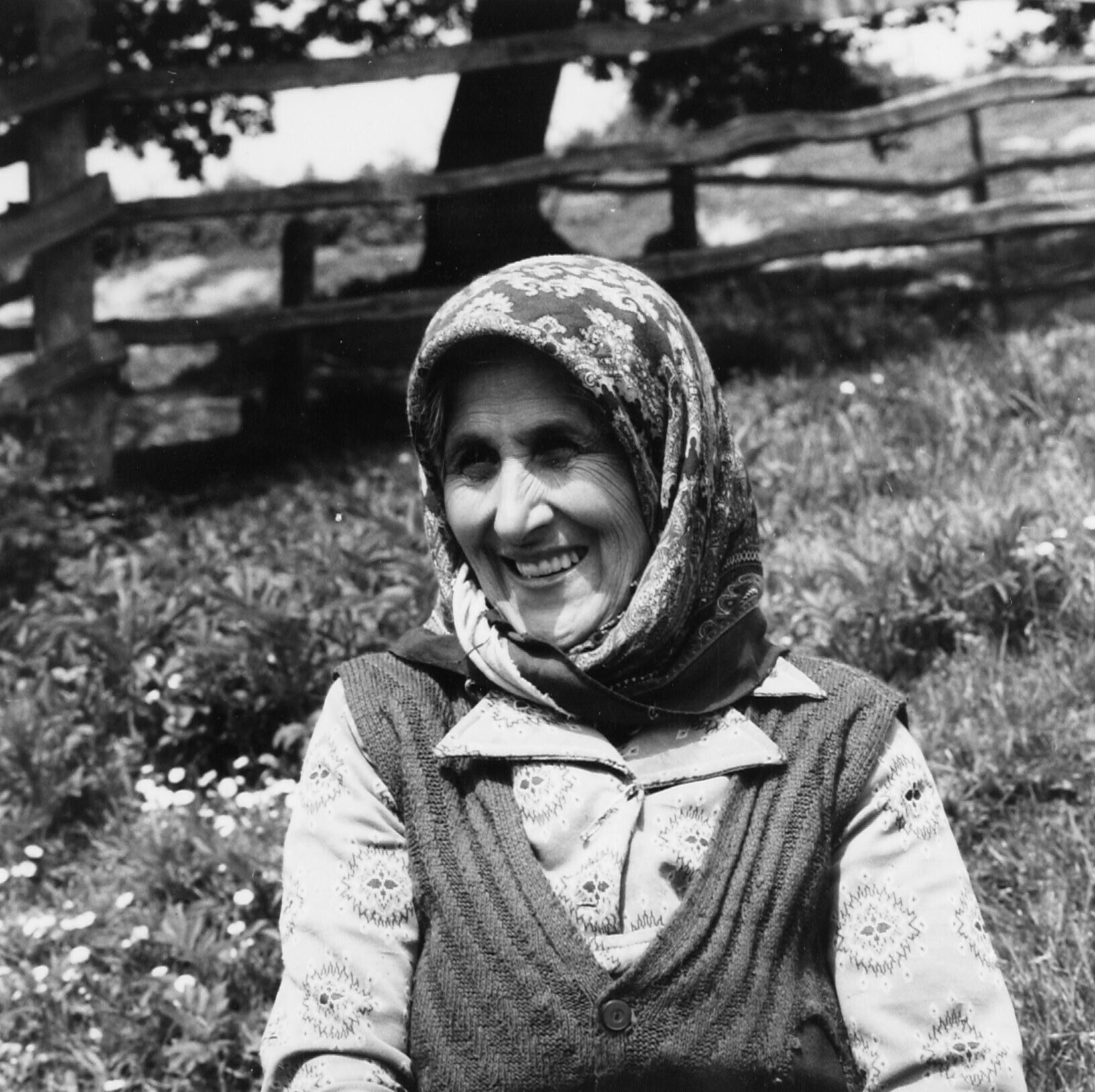 Vrouwen poserend voor een type woning afkomstig uit ...