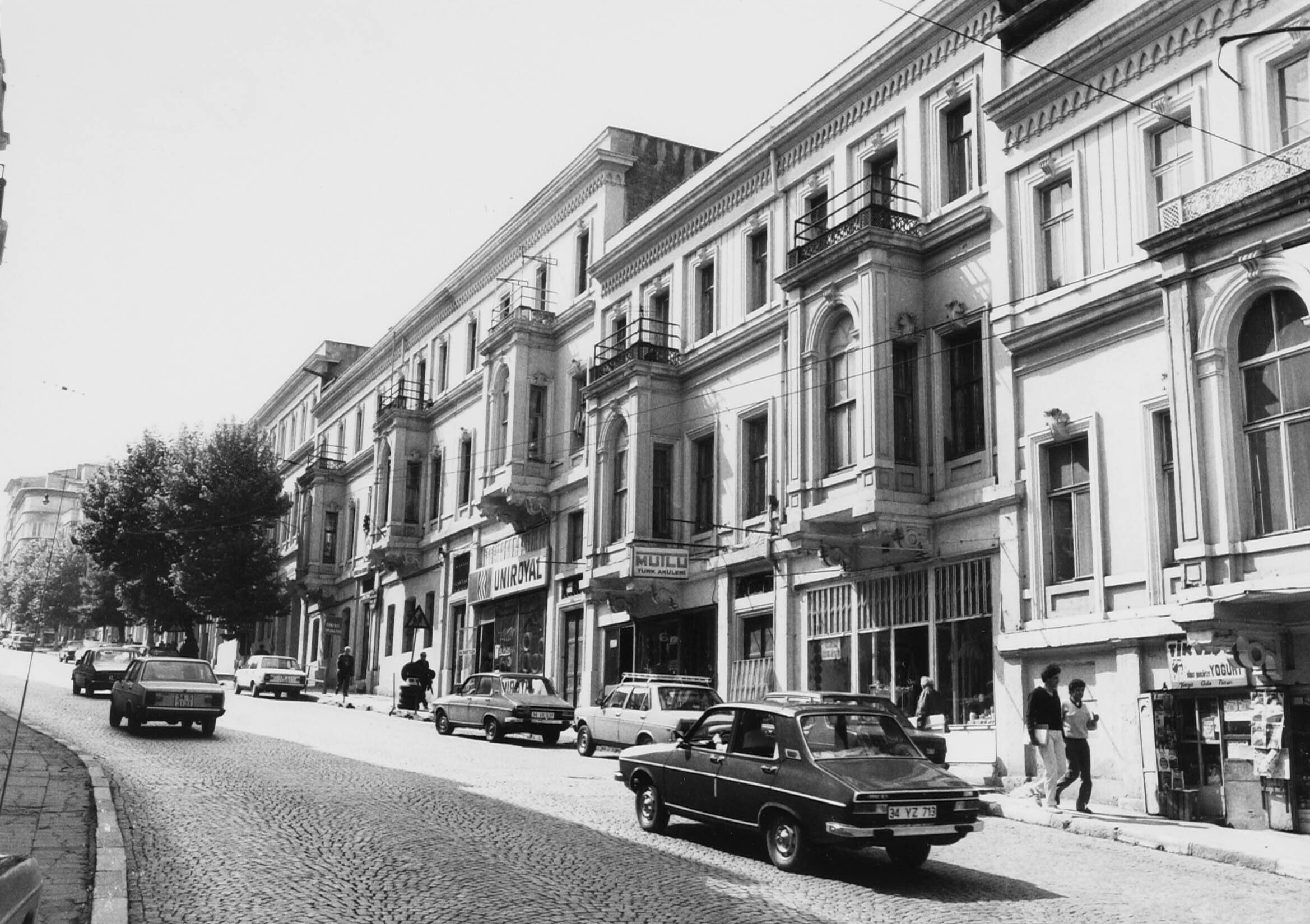 Winkeliers o.a.slagers voor winkel in stadswijk Ulus