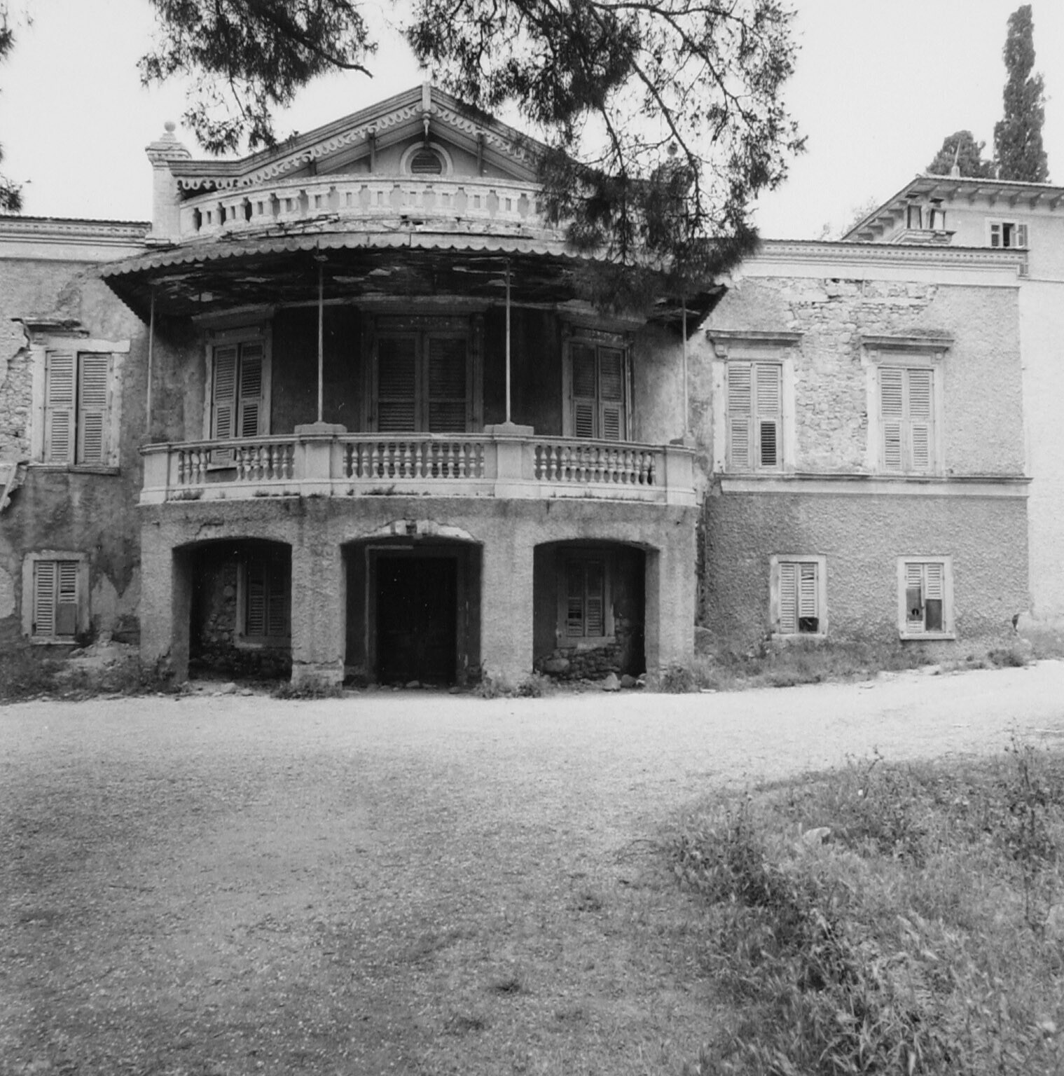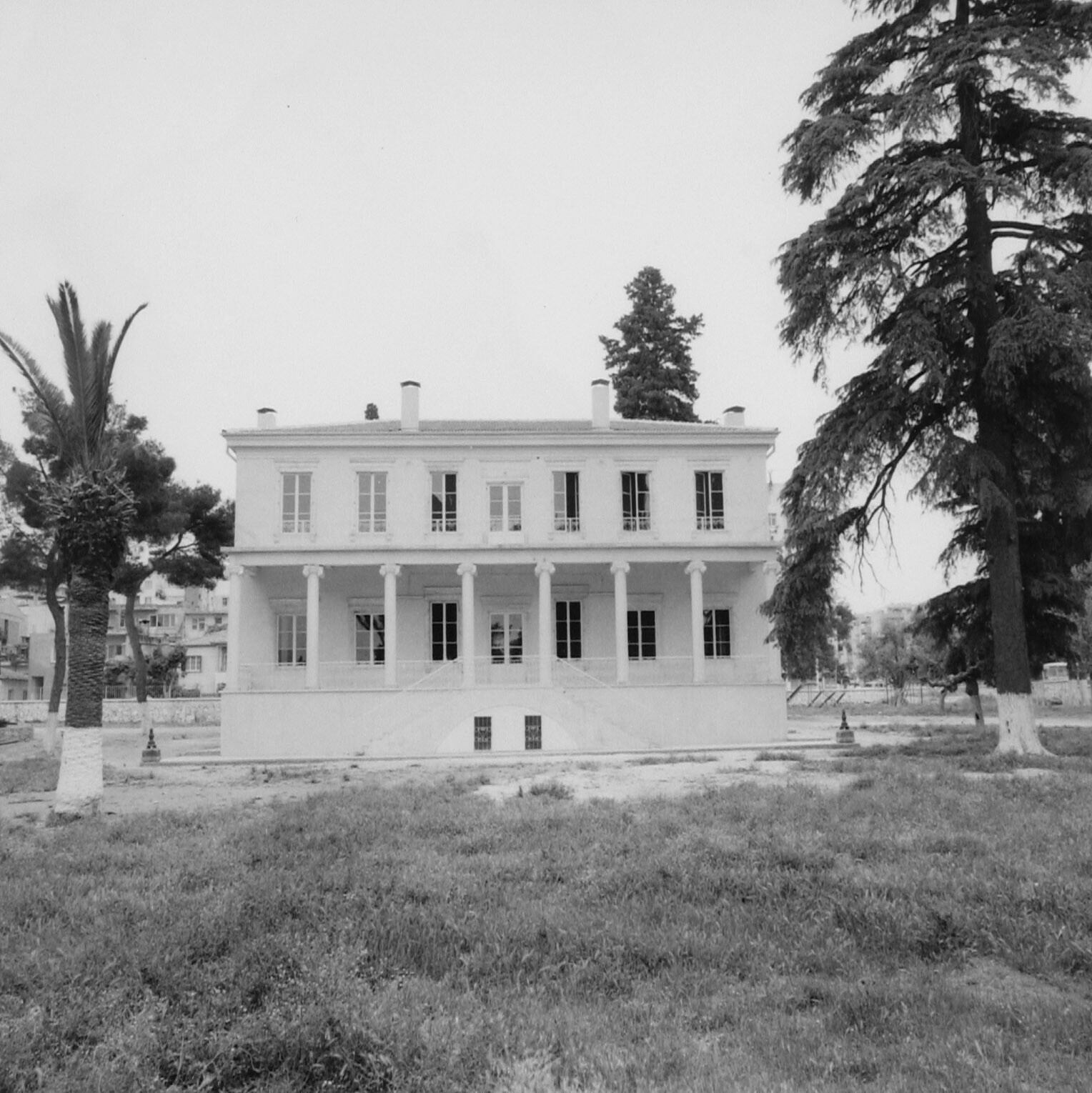Een huis met duidelijk Griekse invloeden zoals te zi...