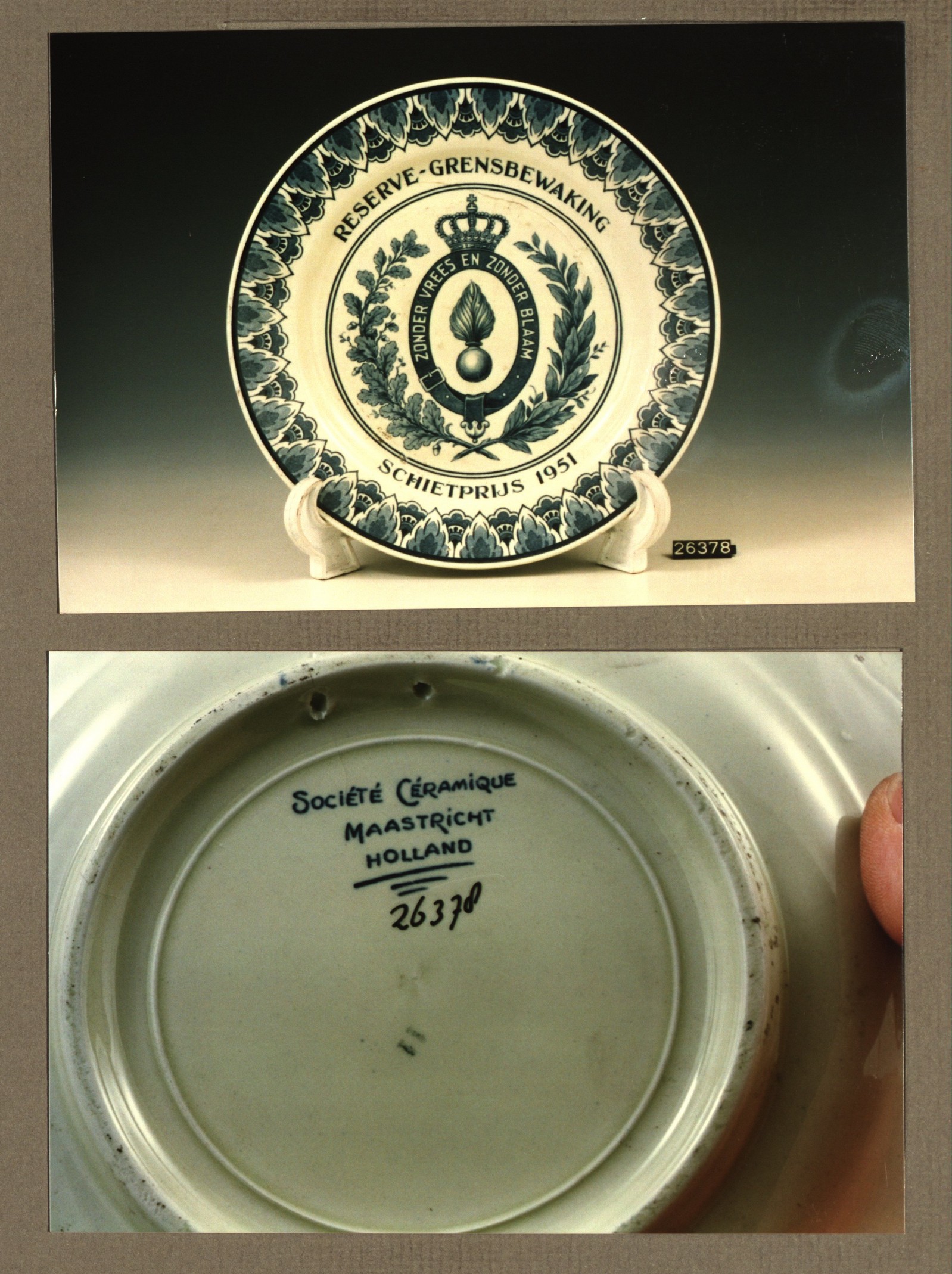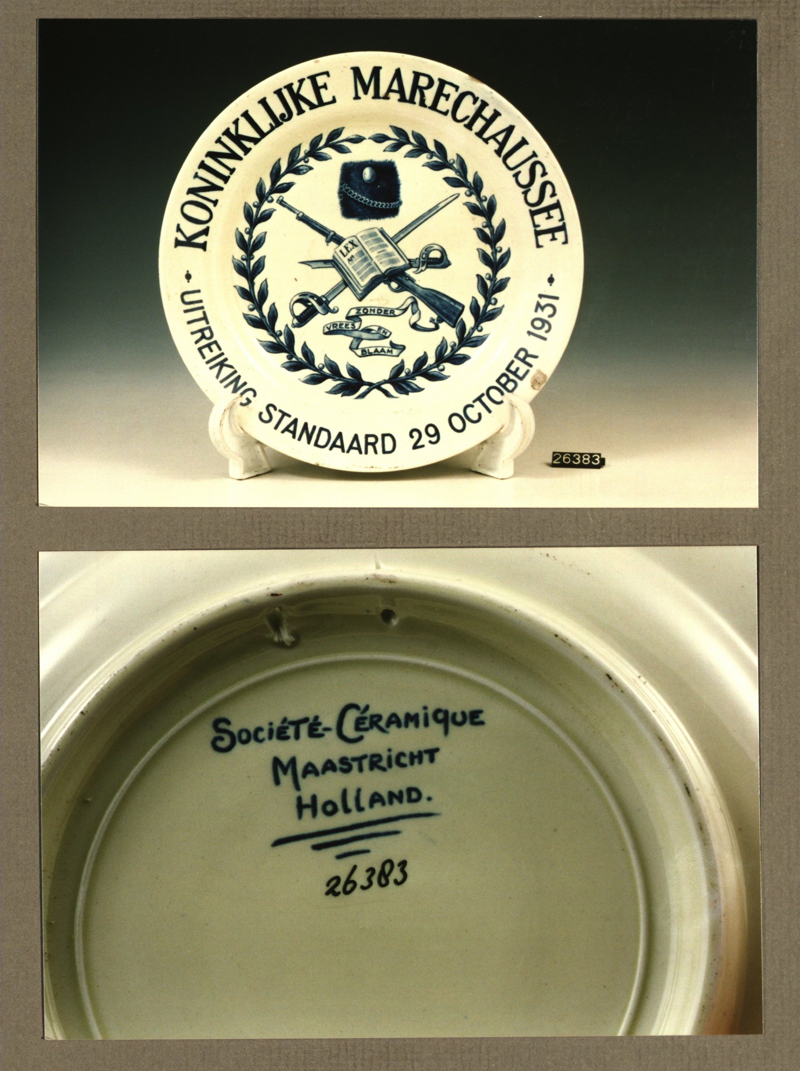 Wandbord met decor Kon.Marechaussee uitreiking stand...
