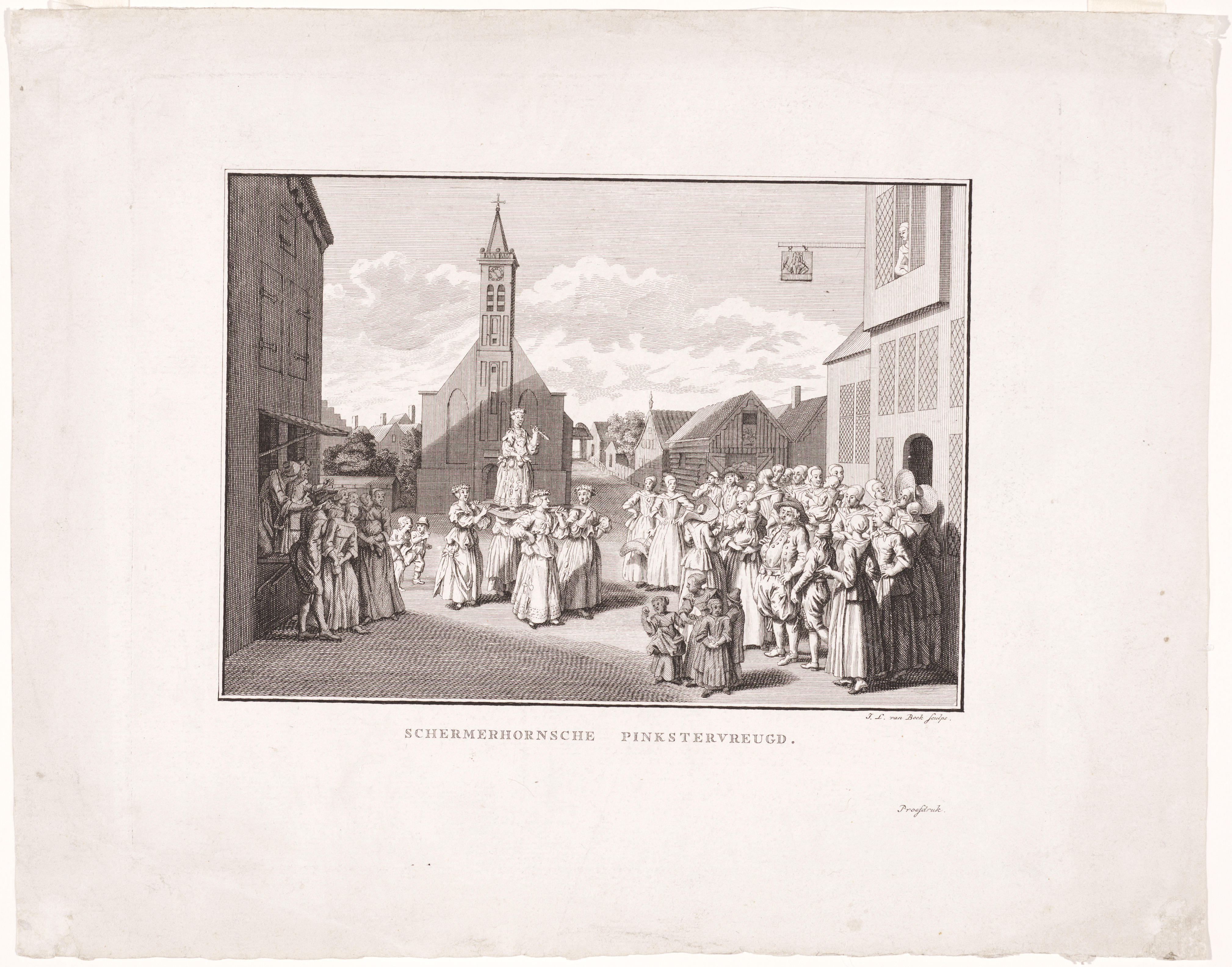 Optocht met de pinksterbruid in Schermerhorn, 1732