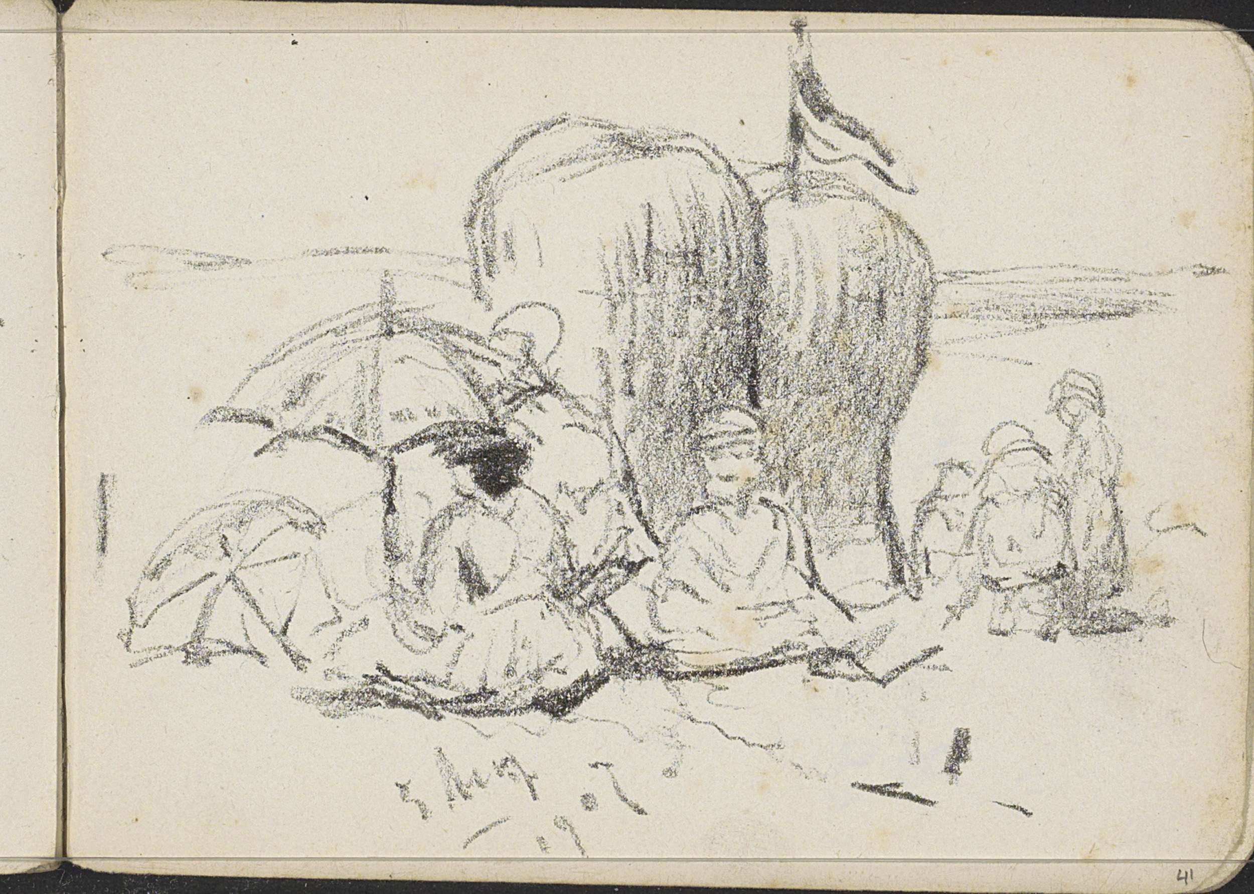 Zittende figuren op het strand