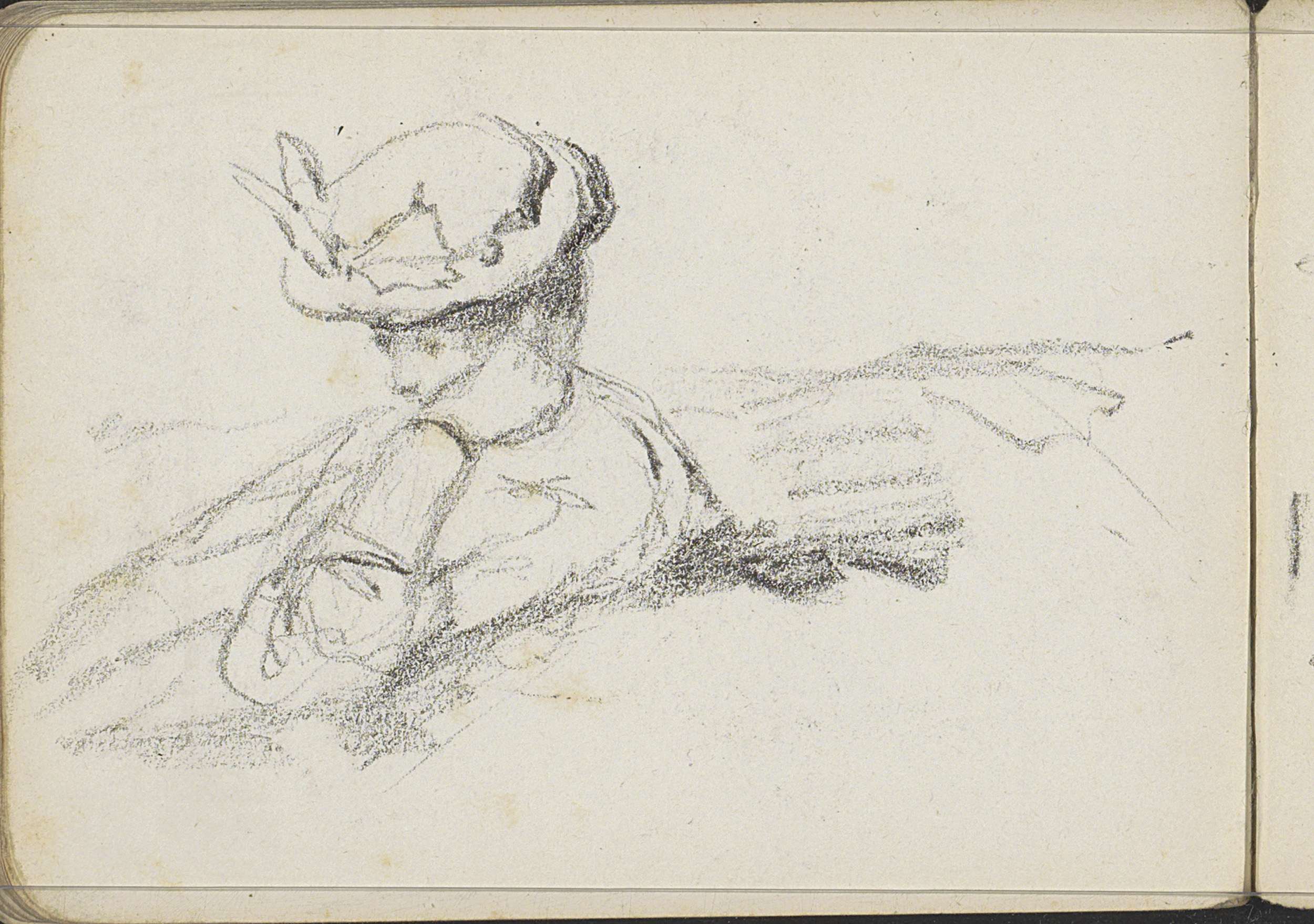 Zittende vrouw met een versierde hoed