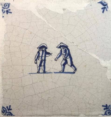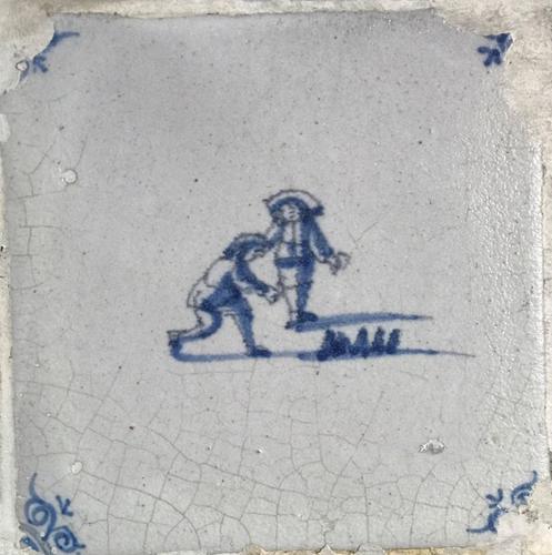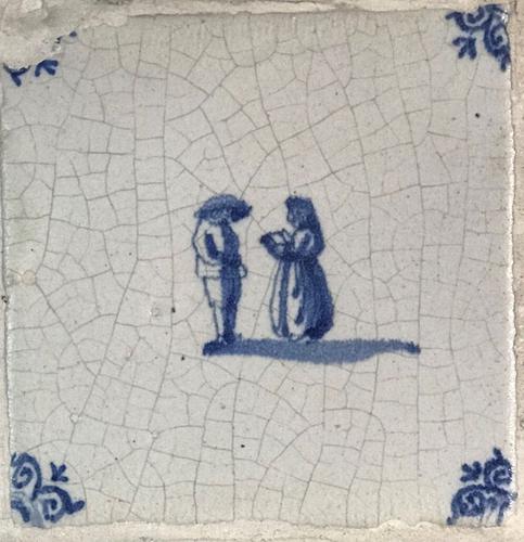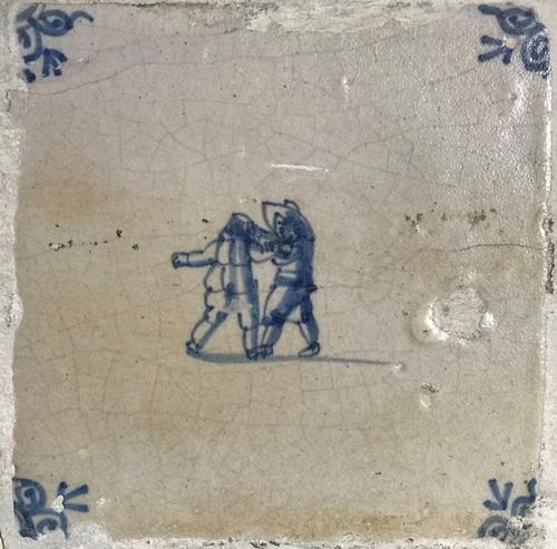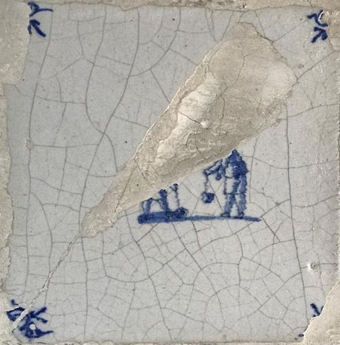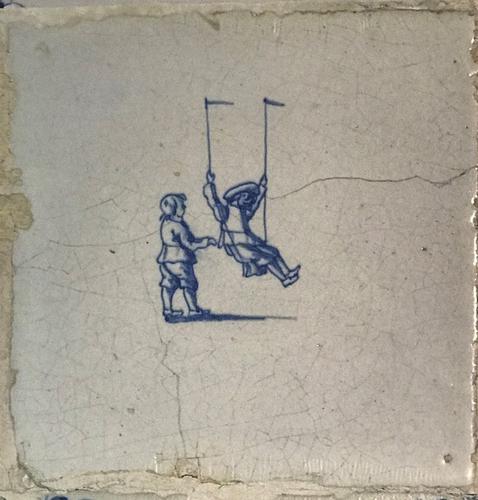 Tegel van aardewerk met tinglazuur voorstellende zui...