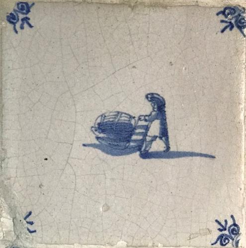 Tegel van aardewerk met tinglazuur voorstellende keg...