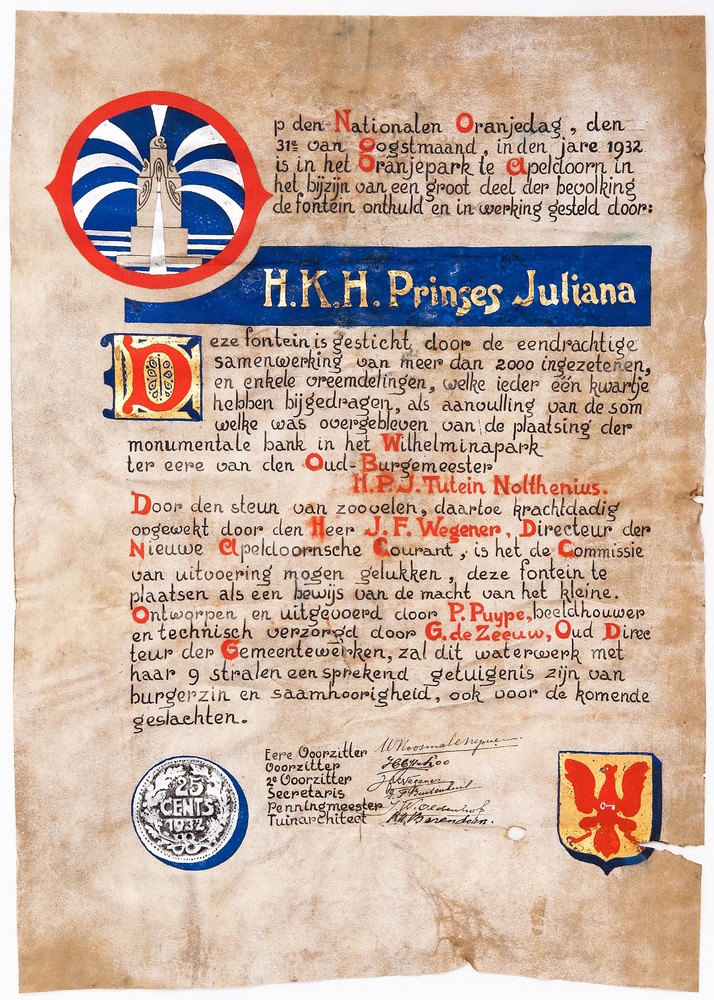 Oorkonde van de onthulling van de 'Kwartjesfontein' ...