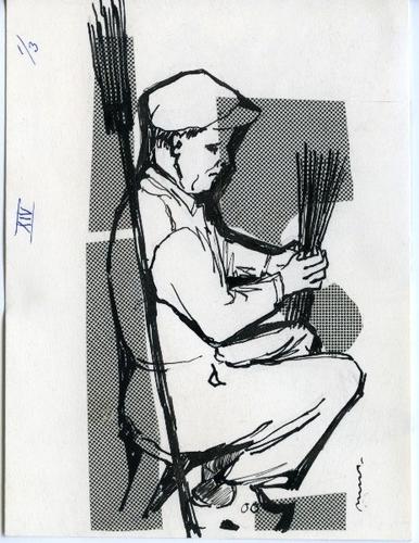 Tekening van een bezembinder aan het werk, 1963