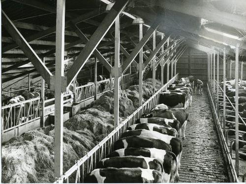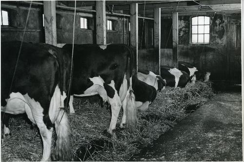 Foto in zwart-wit van koeien in een Friese stal door...