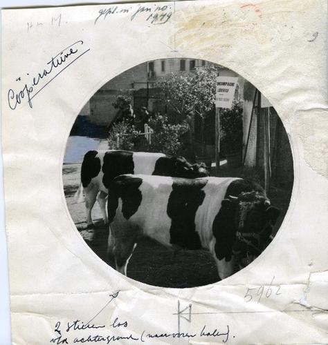 Foto in zwart-wit van twee stieren, 1948